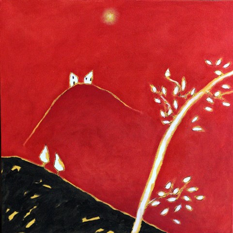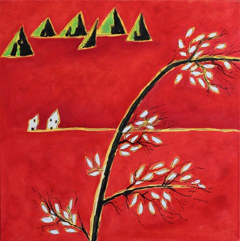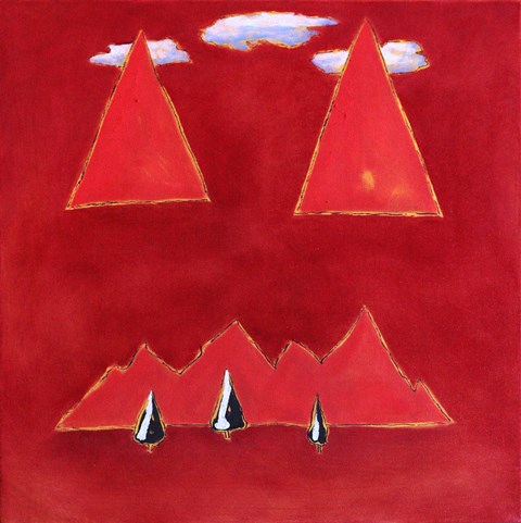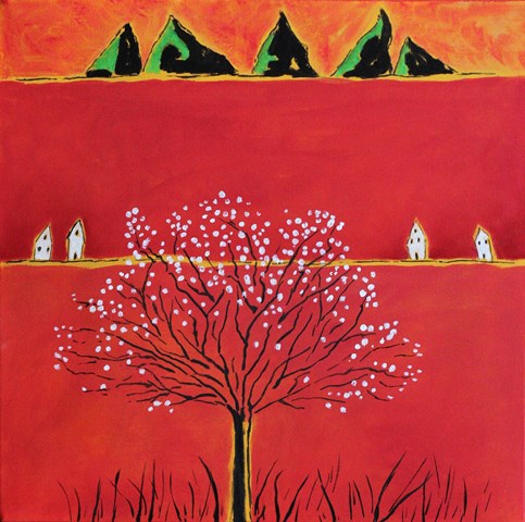 Motivo conduttore delle tele in mostra è il paesaggio su sfondo rosso, a simboleggiare l’urlo dell’artista contro il surriscaldamento globale del pianeta Terra ed i preoccupanti e sempre più accelerati cambiamenti climatici.