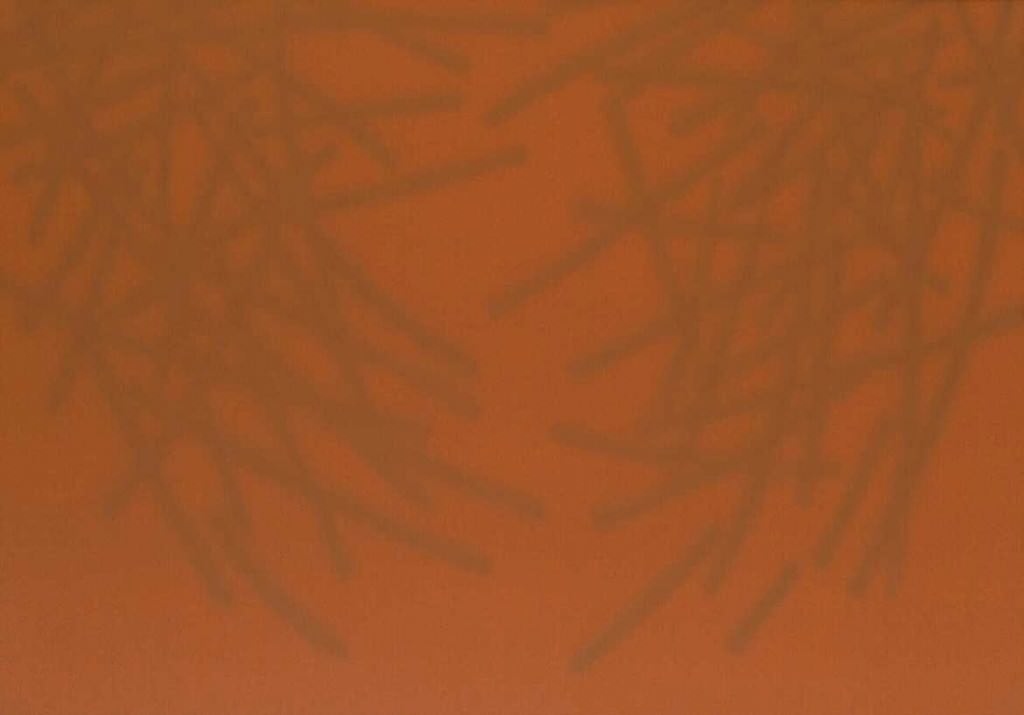 Pellegrini crea delle superfici monocrome e, su di esse interviene con un paziente lavoro di “scrittura” segnica. Il colore entra in totale simbiosi con il segno veloce e ripetuto. La superficie diventa la linea d’ombra del linguaggio.