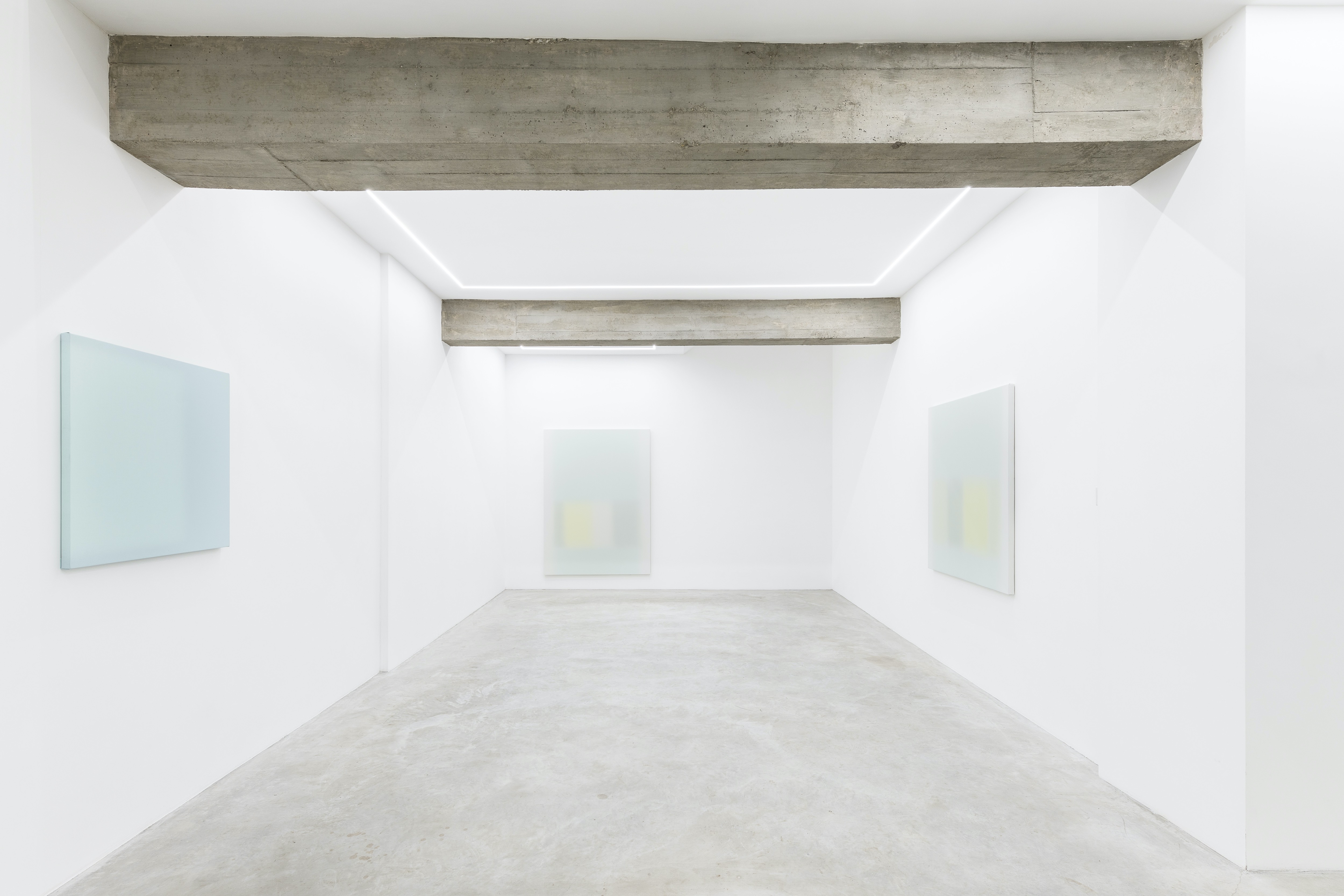 I dipinti di Pellegrini - il cui lavoro si sviluppa in serie - sono originati da un accumulo di impercettibili strati di pittura stesi sulla superficie in maniera uniforme. Il rigore lineare del lavoro giovanile, radicato nelle sperimentazioni analitiche dell’Astrazione Oggettiva, viene trasfigurato nel nuovo corpus di opere in una sofisticata sovrapposizione di piani illuminati, verso una dimensione più eterea e rarefatta già annunciata dalle serie precedenti e testimoniata in mostra da due lavori del ciclo Profili.