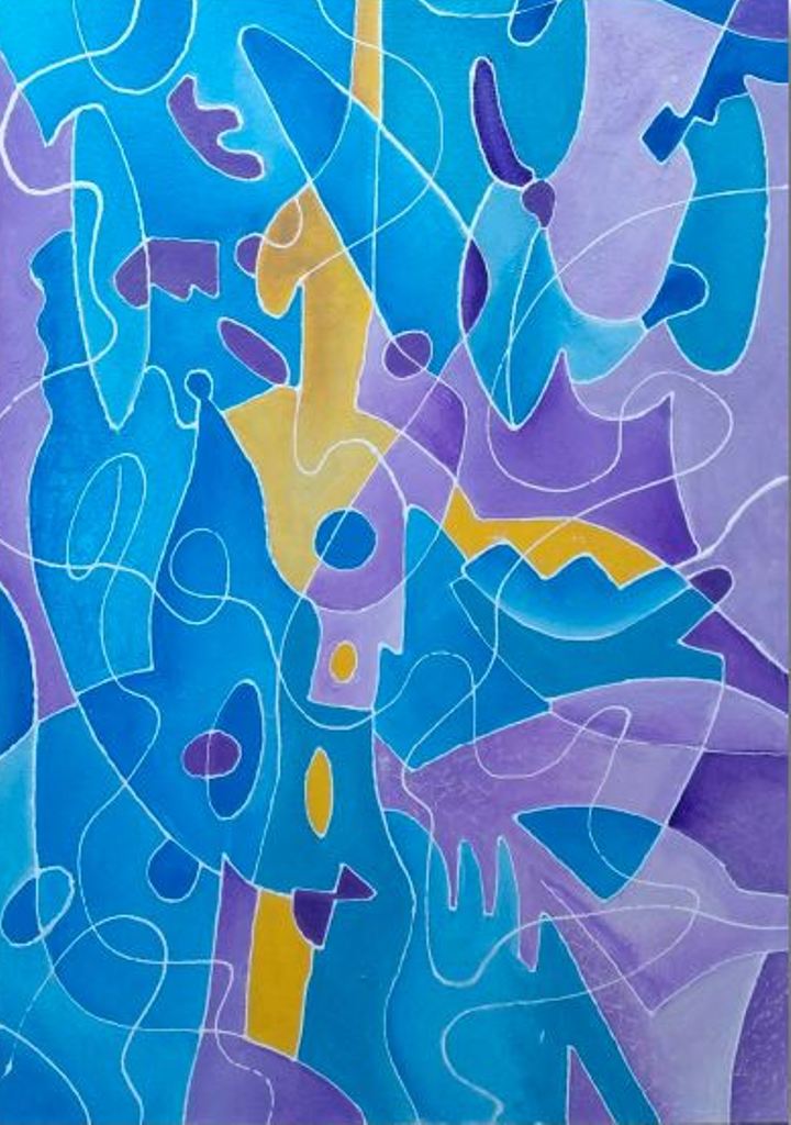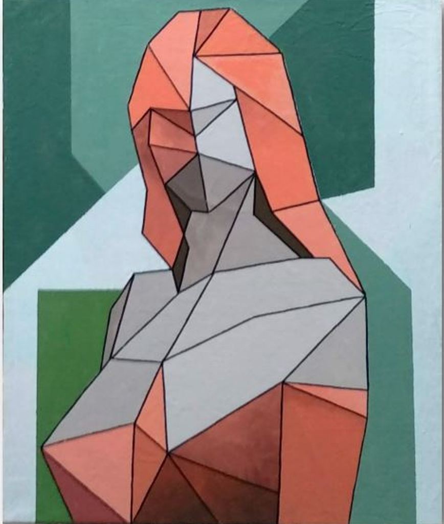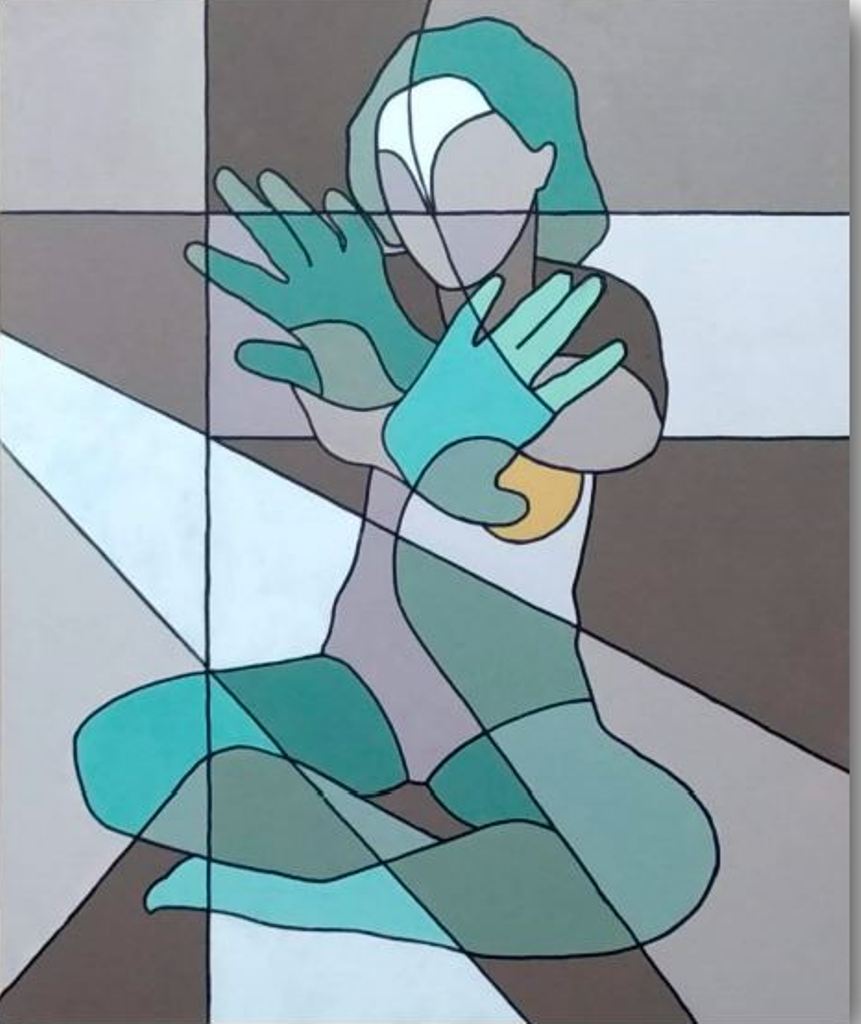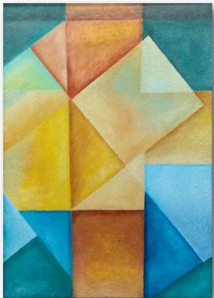 Interessante e coinvolgente, poi, l’ultima produzione dell’artista che, con un ulteriore scatto di fantasia e creatività, si rivolge ora alla figura umana. Si tratta, in un certo senso, di un ritorno al passato, ai suoi inizi classici e figurativi, ma in questa fase la sua visione e la sua interpretazione anatomica è profondamente mutata. Non più descrizione né rappresentazione oggettiva del reale, ma solo forme anatomiche percorse dal segno e dal colore, da incastri e tassellature che, nel loro insieme, vengono a creare e determinare un Unicum visivo dove Astratto geometrico e figurativo sembrano convivere in modo assolutamente naturale ed armonico. Ecco allora che in queste opere la linea e la costruzione geometrica, seguendo le forme anatomiche delle figure rappresentate, danno luogo ad una interessante ed imprevedibile metamorfosi segnica che si trasforma in pura riflessione cromatica dove tutto è luce e colore, vibrazione e profondità. In questi casi anche la materia da lui utilizzata diventa morbida e pastosa e sugli sfondi si aprono improvvisi squarci di luce, fluttuanti e morbide pennellate, spontanee ed eleganti cascate cromatiche. A questo punto le sue costruzioni si vestono di leggerezza e delicate trasparenze, si fanno raffinate invenzioni della mente, richiamano assorte e magiche atmosfere.