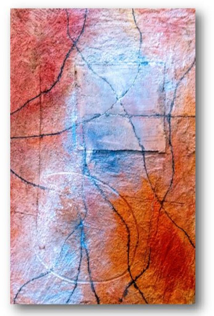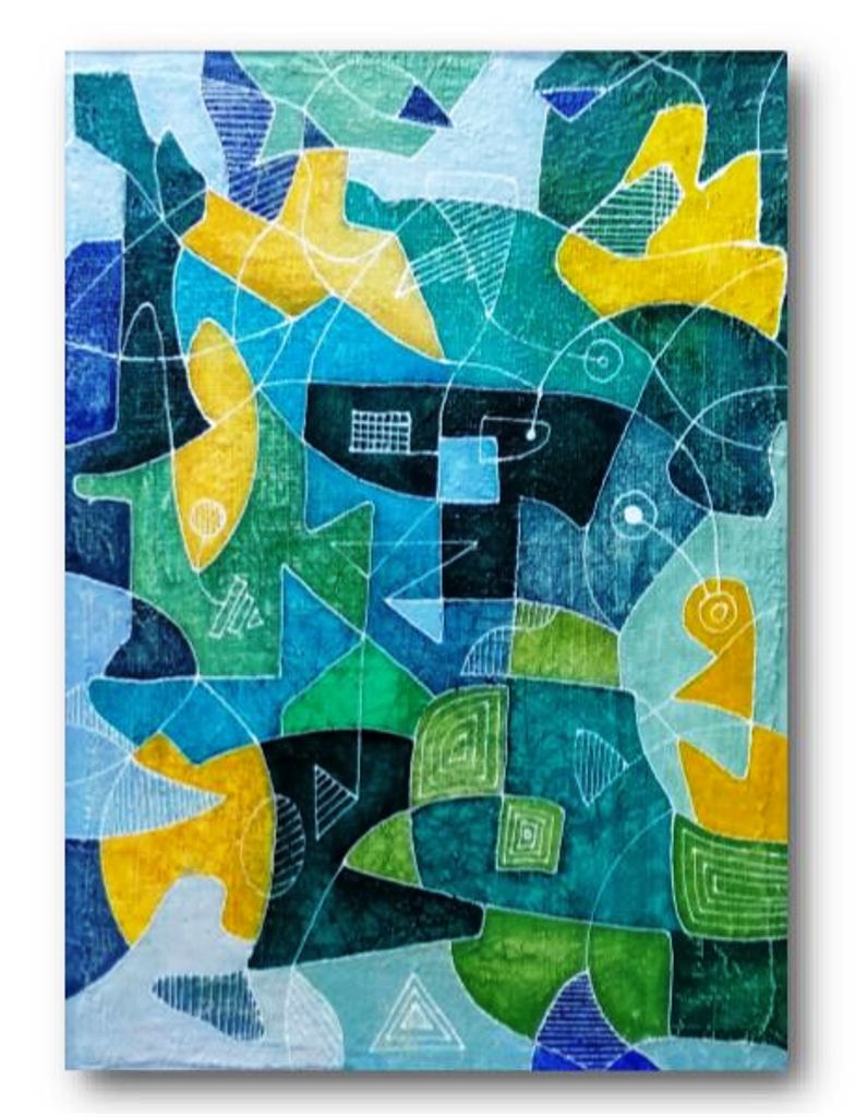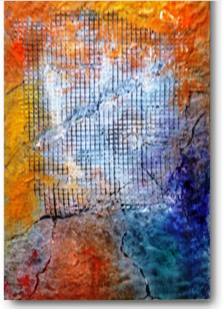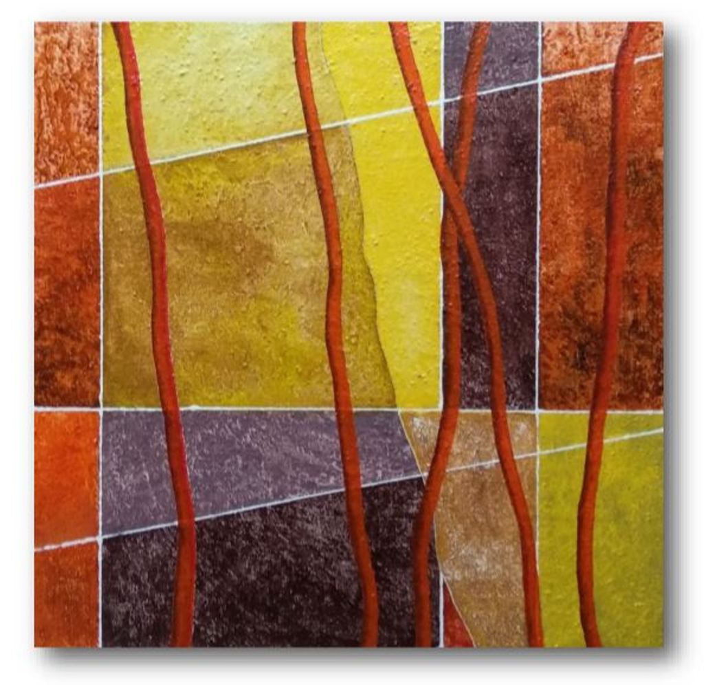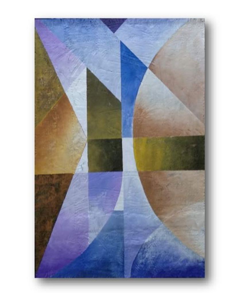 Interessante e coinvolgente, poi, l’ultima produzione dell’artista che, con un ulteriore scatto di fantasia e creatività, ha dilatato le forme e i tracciati, ampliato le visioni e gli spazi creando un Unicum visivo dove Astratto geometrico e Informale sembrano convivere in modo assolutamente naturale ed armonico. Ecco allora che in queste opere la linea e la costruzione geometrica sembrano di colpo interrompersi dando luogo ad una interessante ed imprevedibile metamorfosi segnica che si trasforma in pura riflessione cromatica dove tutto è luce e colore, vibrazione e profondità. In questi casi anche la materia da lui utilizzata diventa morbida e pastosa e sugli sfondi si aprono improvvisi squarci di luce, fluttuanti e morbide pennellate, spontanee ed eleganti cascate cromatiche. In questi casi le sue costruzioni si vestono di leggerezza e delicate trasparenze, si fanno raffinate invenzioni della mente, richiamano assorte e magiche atmosfere.