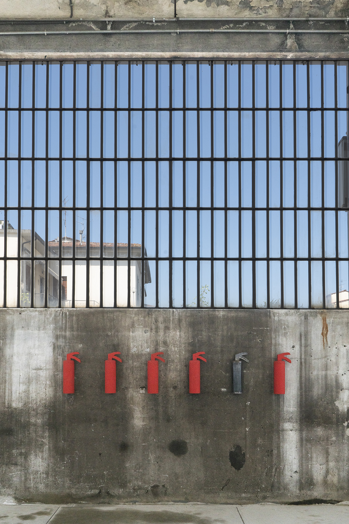 Ruffi gioca con lo spazio e la realtà inserendo l’opera Toti – il titolo deriva dal nome di una nota ditta antincendio di Pistoia – su una parete lasciata inalterata dai lavori di ristrutturazione. Si tratta di una serie di estintori, realizzati in legno colorato a tempera e ferro, collocati esattamente dove durante l'attività dell'officina erano effettivamente presenti degli estintori, e dei quali resta ancora un cartello lasciato a testimonianza, creando così un cortocircuito di senso tipico dei lavori di Ruffi.