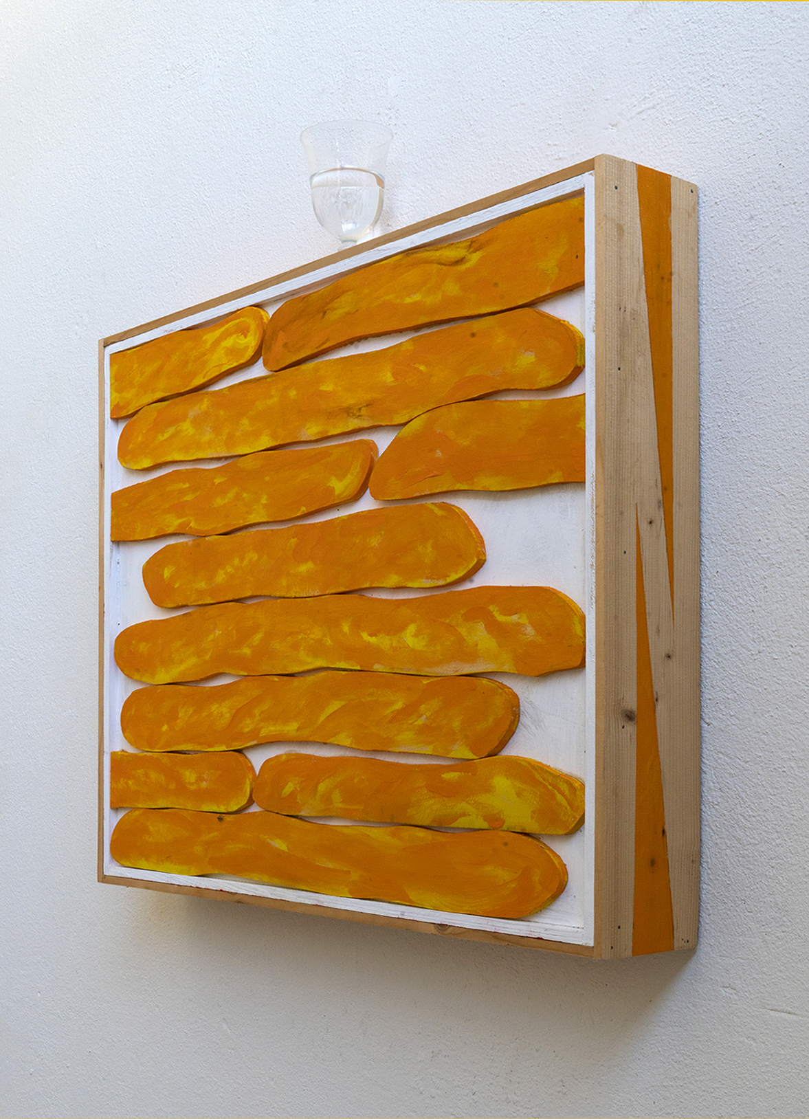 Pane e lapis del 1987 sembra alludere all’unica forma di nutrimento propria dell’artista, mentre il Pane e acqua, 2020 ci fa notare di nuovo Corà potrebbe esserlo dell'eremita isolato da pandemia.