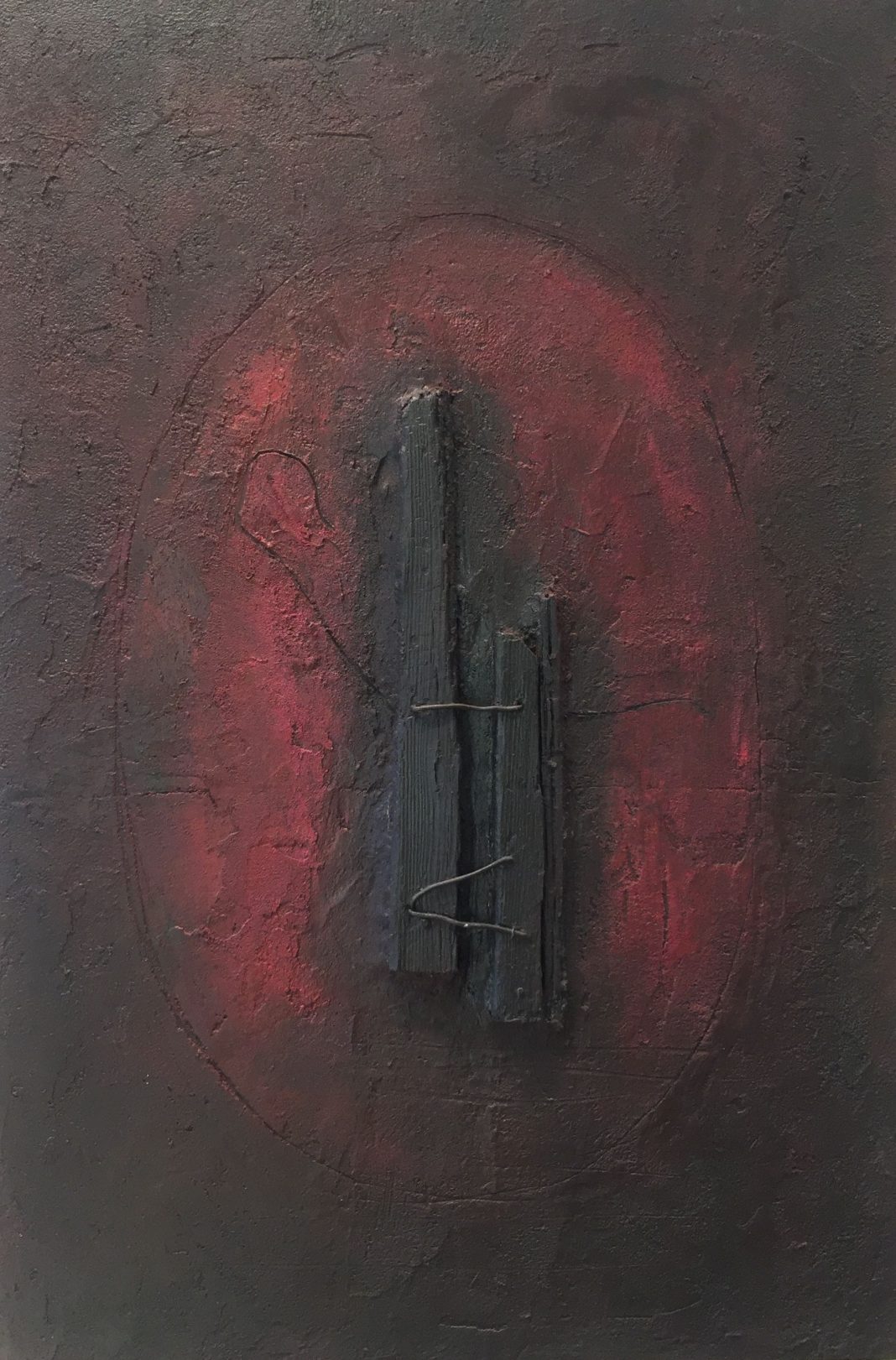 L’artista consapevole delle infinite possibilità al di fuori della pittura in “senso classico” ha condotto negli anni una lunga ricerca sul colore, vedasi il suo colore rosso bruciato, spesso e ricco, che diventa materia informale, e sui materiali, resine, garze, legni combusti che creano intelaiature precise ed ordinate in cui convivono le forme geometriche e le forme libere. Infatti le sue ricerche spaziano dai diversi usi di materiali organici e inorganici.