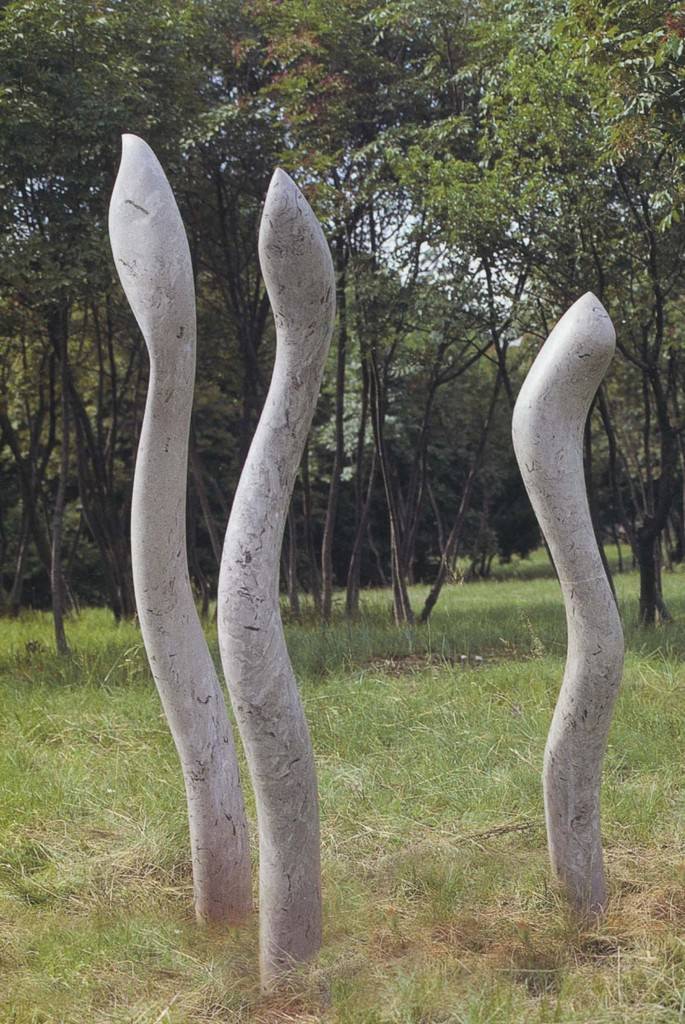 Si presenta invece giocato sul contrasto rispetto all’ambiente espositivo scelto nel giardinetto del Museo Ricchieri e dello spazio esterno della Camera di Commercio il lavoro dell’artista triestino Robin Soave: spiccano le sue creazioni rotondeggianti e di suggestione antropomorfa in pietra d’Aurisina nel contesto verde nel quale sono inserite. La sensazione visiva è di grande armonia ed esprime un sentimento positivo nei confronti del mondo.