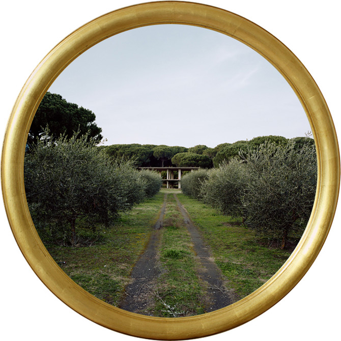 New Vesuvian Lanscapes è un progetto realizzato attraverso una serie di scatti che ha come soggetto il Parco Nazionale del Vesuvio, un luogo mitico della cultura europea, conosciuto in tutto il mondo, ma anche il simbolo di una terra in eterna lotta con se stessa. L’occhio dell’artista è catturato da una serie di dettagli che non dovrebbero trovarsi nel posto in cui sono, perché non ne fanno parte. Eppure è ancora possibile immaginare come dovevano apparire questi luoghi ai visitatori del Grand Tour: un ponte tra il passato (spesso idealizzato) e il presente. Da qui la scelta tecnica del taglio circolare delle fotografie e le cornici a foglia d’oro che richiamano la tradizione paesaggistica del sette/ottocento.