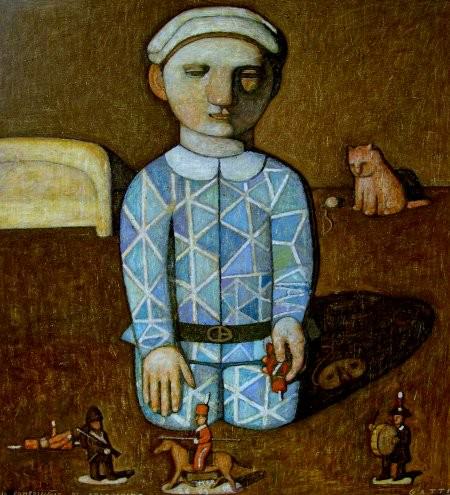 Un universo silenzioso, ovattato, in cui dominano la pace e l’armonia, la solida concretezza di un quotidiano fatto di piccole cose di valore. Le opere di Gigi Gatti appartengono a un universo che sentiamo ci appartiene, perché è quello delle nostre radici. Un universo pre-consumistico, pre-televisivo, in cui i bambini anziché con la Playstation giocavano ancora con i trenini e con le trottole, coi soldati di piombo e con le macchinine.