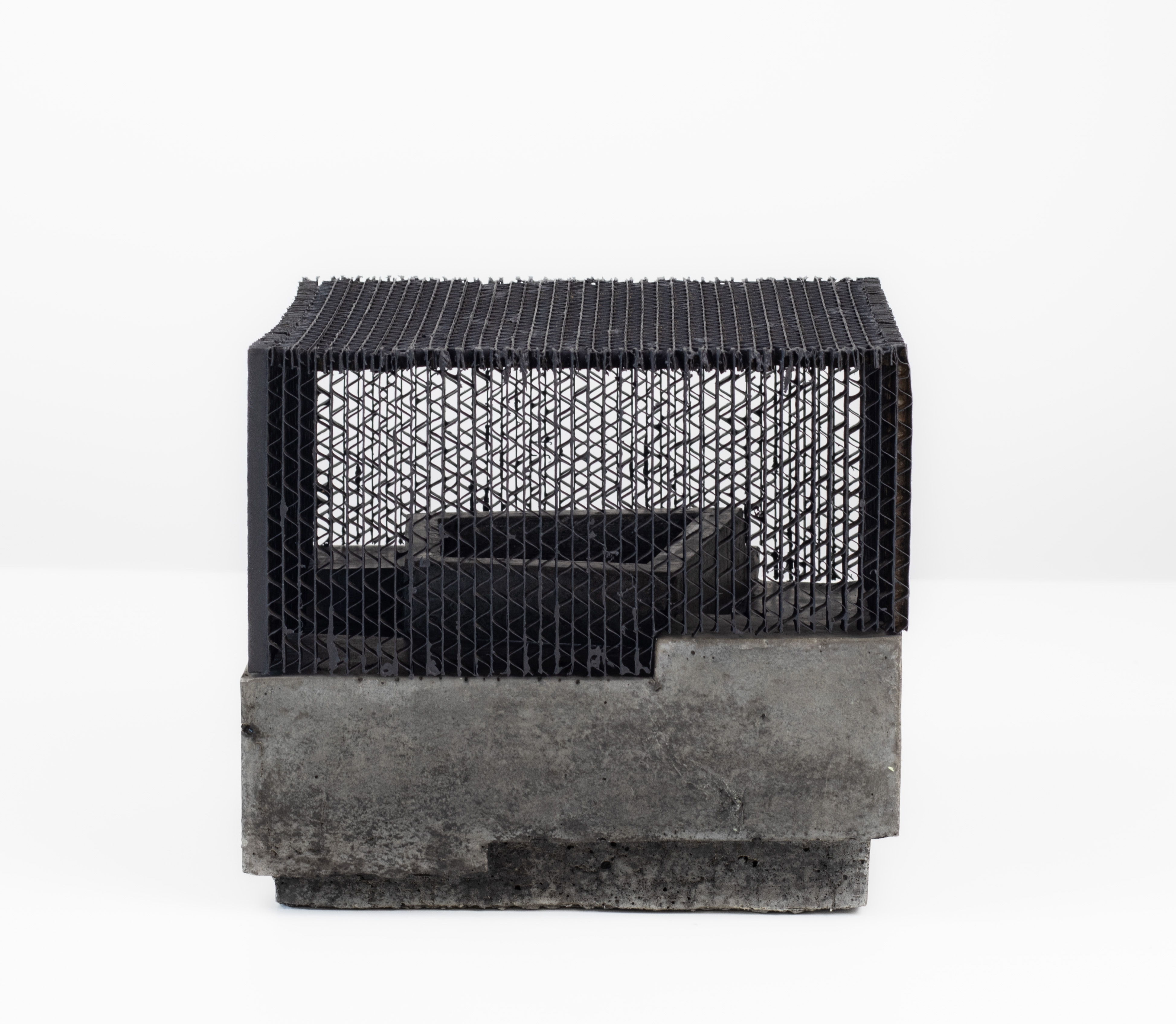 Dal reciproco scambio di esperienze, dallo studio aperto e proteso verso il contesto personale dei due autori, nasce una collezione in simbiosi: gli oggetti di Mázsi intervengono dove gli anelli-scultura di Mariani trovano riposo dal portato quotidiano. Una collaborazione concreta tra gioiello e oggetto, giocata non solo sugli effetti dei materiali, ma sopratutto sulla loro natura e carattere formale: concrete è il cemento, alla base dei lavori di Boglárka Mázsi e concreto è l’effetto materico del niello, tratto distintivo delle opere gioiello di Gigi Mariani.