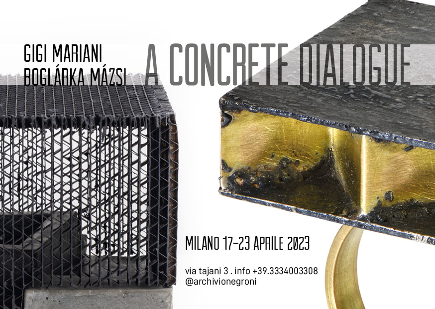 Per il Fuorisalone 2023 Archivio Negroni presenta il progetto A concrete dialogue, incontro tra gioiello di ricerca e object design, attraverso le opere di Gigi Mariani e Boglárka Mázsi, nato a seguito del Premio Gioielli in Fermento.