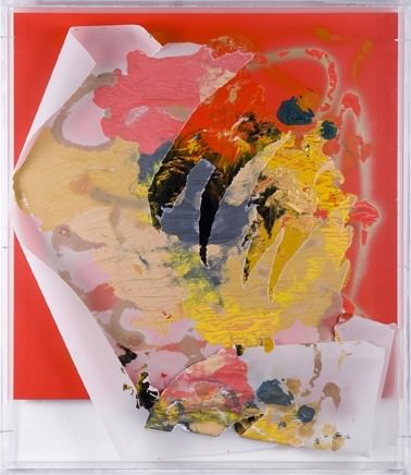 Manuela Gandini nel testo in catalogo commenta: “Tutto avviene in pochi secondi, come nel jazz. Superficie accidentata, tubi di colore e gesto. In un rapporto corporeo con l’opera, sulla quale getta l’acrilico tracciando percorsi imprevedibili, l’artista spiegazza con misurata foga i fogli da lucido, li sporca e li strappa, sovrapponendoli al liquido cromatico”.