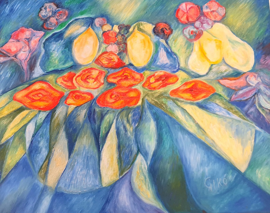 Le tele di GIKO diventano motivo di dialogo intenso tra forma e cromia, dove ogni pennellata è un moto dell'anima che si traduce in una sinfonia visiva.