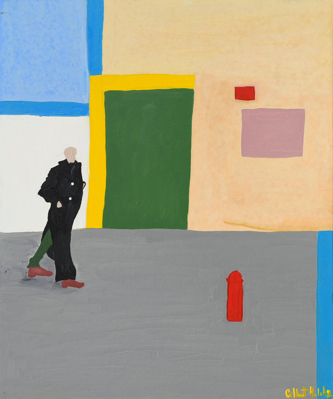 Una parte dei dipinti di Gilbert Halaby prende avvio dalla raccolta di questi video, che viene frammentata e ricomposta in tele di medio-piccolo formato, in cui i colori ad olio sono usati allo stato puro, unico tratto a ridisegnare le sagome e le forme di scene cittadine senza ombre e senza rimpianti per ciò che non appare. Tutto è colore, tutto si stende sulla superficie in accordo tra visione e immaginazione. La pittura modella lo spazio direttamente, coraggiosamente e in maniera sfrontata sulla tela. Il blu, il rosso, il giallo, il rosa, il nero, il bianco, il verde smeraldo sono note assolute, non ammettono 'sfumature' alla loro forza brillante e fanciullesca, si accordano e trovano la loro ragione di essere nella composizione narrante: lo sguardo viene accolto in una rinnovata felicità dell'occhio che vuole escludere la aggrovigliata complessità dei dettagli, per esaltare la fugace impressione dell'insieme, l'intuizione del tutto pieno."