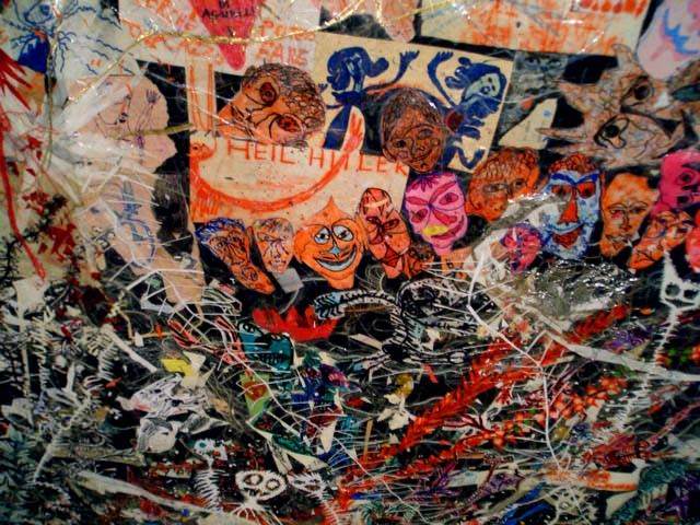E' davvero una disfatta questa storia della mancanza, dell'assenza d'opera, che nel non essere mai finita è s-finita, e sfinisce anche noi che ci troviamo nostro malgrado davanti ad essa. Qualcosa manca nell'atto di ricomporsi e si apre un foro, un'imboccatura, ancora ani, fighe, orifizi, dai quali Gilberto sfugge a se stesso come autore. Nessun Autore, nessuna autorità. Chi giudicheremo, ed eventualmente, chi puniremo per ciò che vedremo? Coloro che sono qui imputati lo hanno già capito bene, che, a titolo di diritto, non può esistere un solo responsabile, ma che Giovagnoli sarà invitato a comparire più volte. Io che sono suo amico mi sentirei quanto meno di difenderlo, se proprio non posso assolverlo. So di certo che è un ladro perché ha sottratto l'opera dalla sua collocazione di bene ormai assunto in un circuito di proprietà. So che nell'epoca dei neo-cons è considerato reato arrischiarsi nella restaurazione del Pericolo, suggerendo una comunicazione crudele; che non è in sintonia, con i ben pensanti di destra e di sinistra, muoversi nell'urgenza, come i personaggi di Dostoevskij, nella promiscuità, delle notti al GROS, nella vicinanza della propria opera; che non interessa, alle opinioni che si formano nell'estetica dei salotti televisivi, riaffermare il senso autentico di un'arte intrinsecamente politica. Nelle società di controllo la zona di guerra è spostata sul terreno della creatività che si fa re-esistenza. Ecco cosa manca: il popolo manca, l'apparire di un popolo minoritario, come possibilità di resistenza attiva e creativa.