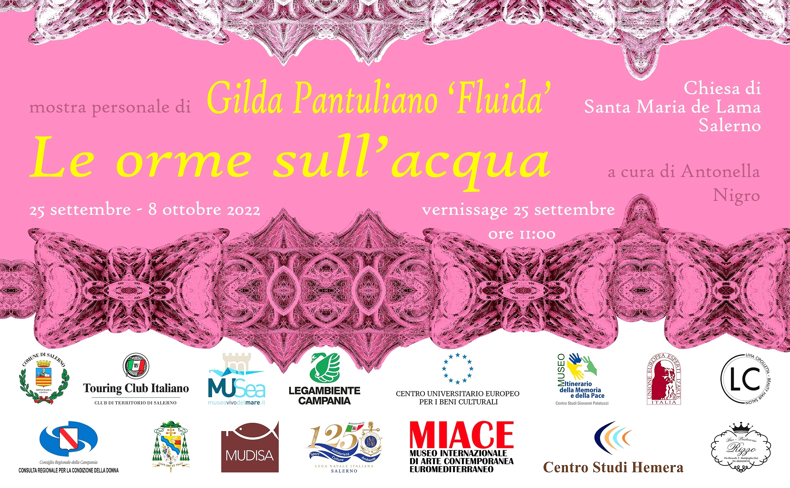 Sono alcuni dei volti del lavoro di Gilda Pantuliano, che dopo quelle tenute in altre città propone per la prima volta una mostra personale nella 'sua' Salerno: domenica 25 settembre alle ore 11:00, nella chiesa di Santa Maria De Lama, si inaugura l'esposizione dal titolo Le orme sull'acqua, a cura del critico d'arte Antonella Nigro.