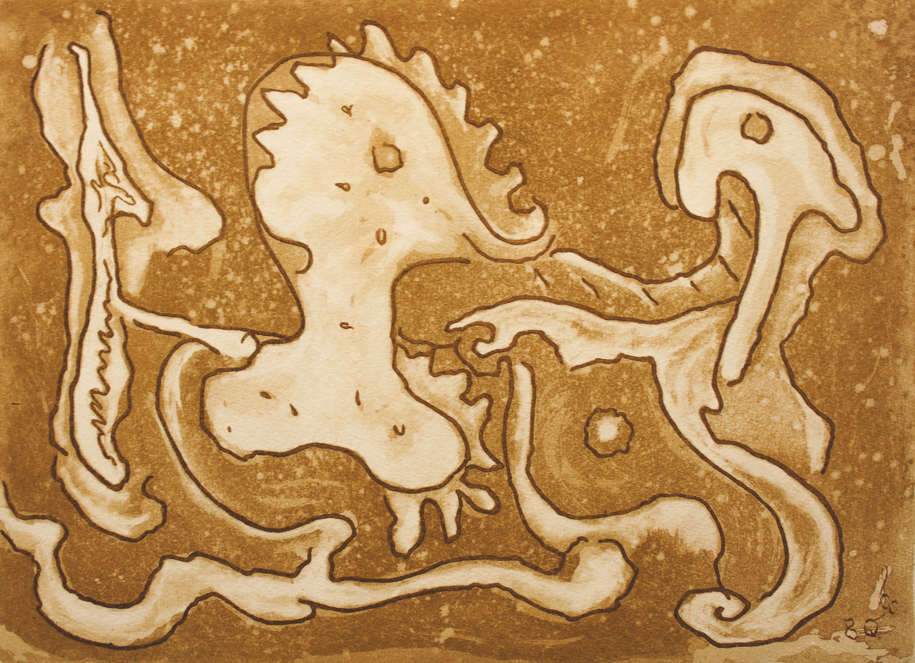 La formazione scientifica di Dorfles sembra riflettersi nell’uso delle macchie, quasi a voler sostanziare un pensiero profondo che va al di là della pura materia.