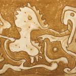 L’utilizzo della foglia d’oro riporta a tempi arcaici, a magie in cui l’alchimista Nespolo penetra i segreti della natura alla ricerca della pietra filosofale e dell’elisir di lunga vita.