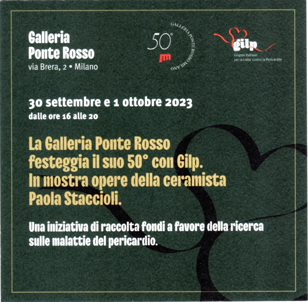 In occasione del 50° anno dalla fondazione della galleria (primavera del 1973) in chiusura di questa prima mostra, la Galleria Ponte Rosso dedica due giorni a GILP, gruppo italiano per la lotta alla pericardite. (www.gilponlus.org).