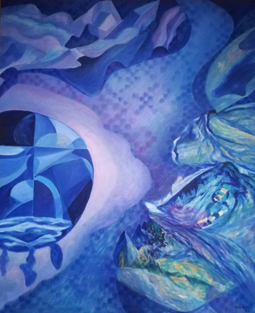 Nella sua espressione colpisce, innanzitutto, la forza libera e potente del colore, il controllo della forma e poi, soprattutto, la sua straordinaria capacità di saper unire, in un solo ed unico afflato, natura e cultura, cuore e ragione, riflessione e sentimento. Pittura che, nel suo evolvere, indaga le ragioni dell'essere e dell'esistere, ma capace altresì di ascoltare e indagare le voci intime e segrete della natura. E proprio la natura sembra essere la grande ispiratrice delle sue opere: rami, fossili, radici, microcosmi, sentieri e poi finestre aperte sugli spazi liberi dell'orizzonte, il mistero dei boschi e del loro silenzio rotto solo dal frusciare monotono delle foglie mosse dal vento. Ecco, tutto questo sembra essere la fonte principale della sua ispirazione e poi, ancora, la sua attitudine all'ascolto e la sua abilità nel saper cogliere i dettagli e i particolari per estrapolare da ogni cosa segni, tracce e memorie a cui conferire, poi, simboli e significati di una freschezza unica e imprevedibile. Così facendo il “ready-made”, l'oggetto riscoperto e ritrovato, per mezzo dell'arte e della creatività dell'artista, ritorna a nuova vita, acquista un nuovo linguaggio, si riveste di altri e diversificati significati. Dipinti che traggono spunto ed ispirazione dal mondo concreto e reale ma che, nel loro evolversi e nella loro realizzazione, finiscono per diventare luoghi mentali e fantastici, aperti all'immaginario e all'imprevedibile dove il tempo sembra essersi fermato per suggerire atmosfere delicate e sospese, oltre i limiti dei sensi e delle comuni percezioni. In essi si legge il richiamo alla vita, ai percorsi segreti dell'esistenza, ai misteri del destino. In certe opere, infatti, la linea e la costruzione geometrica sembrano di colpo interrompersi dando luogo ad una interessante ed imprevedibile metamorfosi segnica che si trasforma in pura riflessione cromatica dove tutto è luce e colore, vibrazione e profondità. In questi casi anche la materia utilizzata diventa morbida e pastosa e sugli sfondi si aprono improvvisi squarci di luce, fluttuanti e morbide pennellate, spontanee ed eleganti cascate cromatiche. Tutto, insomma, in questa bravissima artista, è luce e colore, e tutto si svolge e si risolve in una gradualità di toni e semitoni, di tinte calde e fredde, chiare e scure, che catturano l’osservatore per immergerlo in una dimensione che spesso diventa irreale, fantastica e sognante, capace di oltrepassare lo sguardo e spingersi oltre.