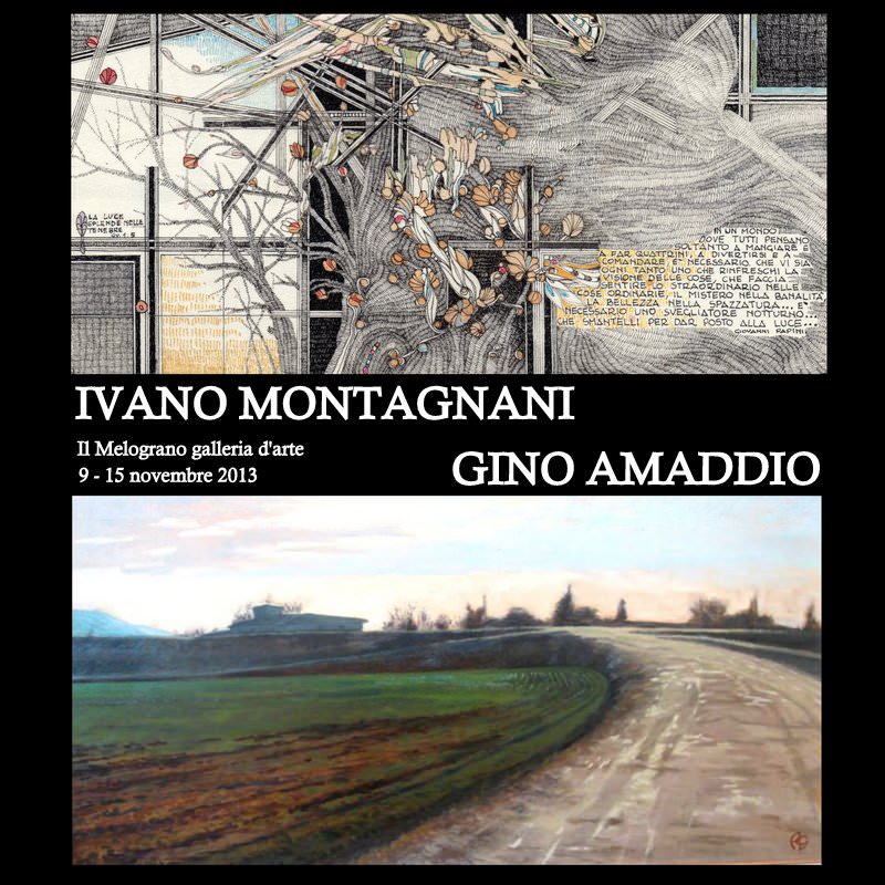 Gino Amaddio e Ivano Montagnani in una mostra bi-personale al Melograno. I due artisti vivono in provincia di Pisa, in luoghi ricchi di storia e tradizione, Cascina e San Giovanni alla Vena. Ivano Montagnani presenta la sua arte grafica. Gino Amaddio espone la sua più recente opera pittorica.