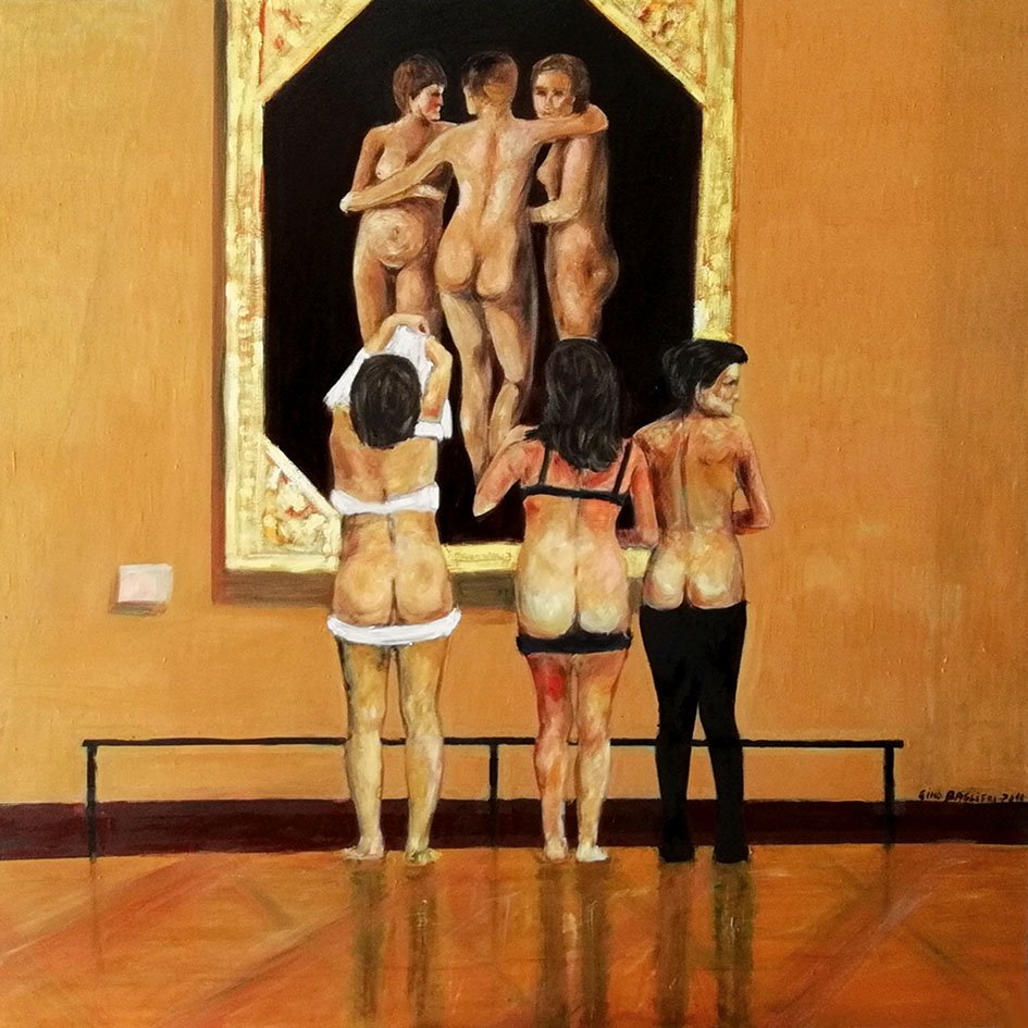 Con piglio dissacrante, con immenso amore per l’arte con la consapevolezza del posto di rilievo che ormai ha raggiunto il suo linguaggio artistico sempre immediatamente riconoscibile l’autore non teme il confronto con i grandi nomi della storia dell’arte proprio perché li cita testualmente, e queste citazioni risultano accattivanti e coinvolgenti nell’economia dell’intera composizione a cui conferiscono una sofisticata ricercatezza.