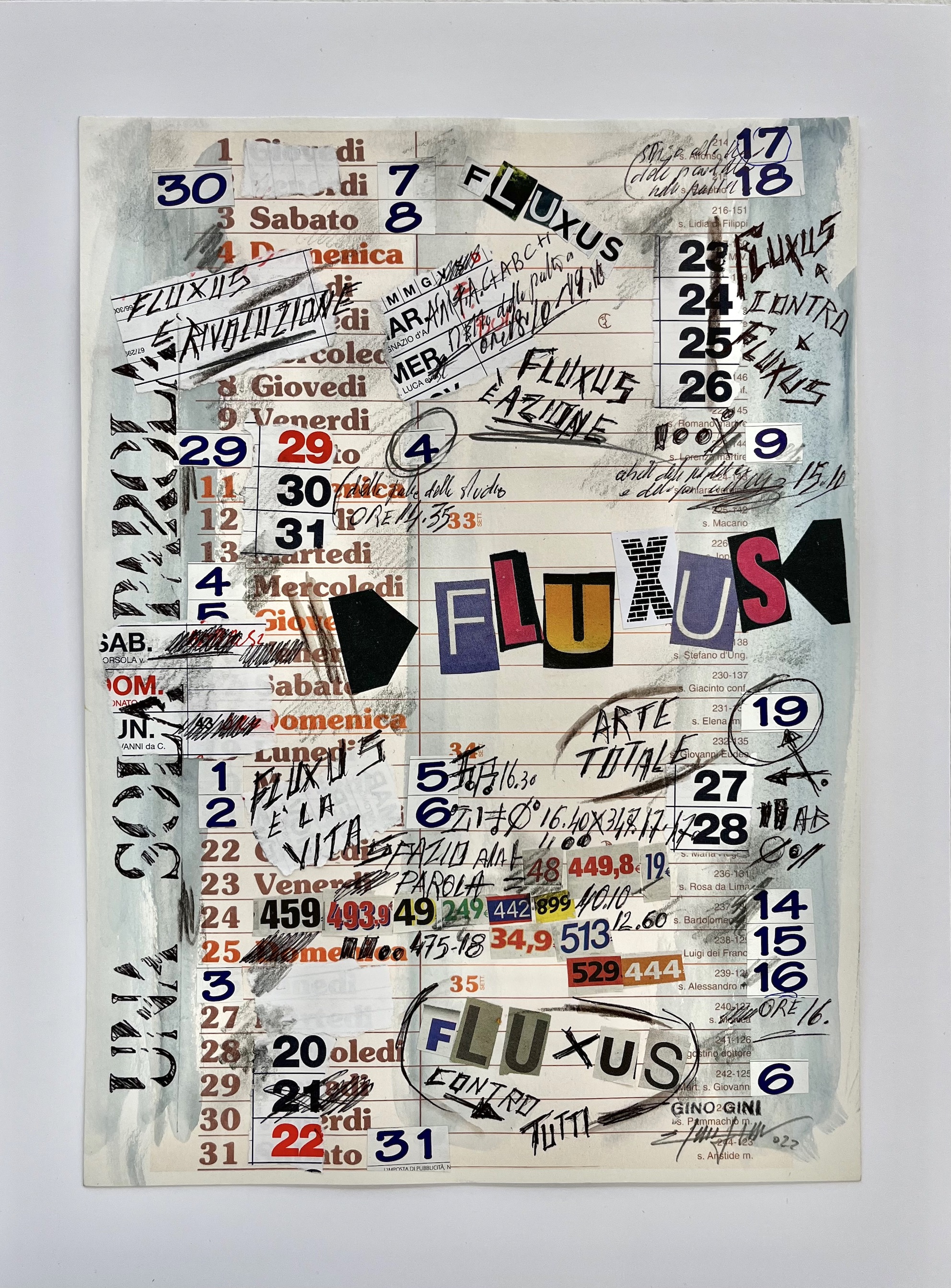 Nella pratica dell’Arte della Visual Poetry il QUOTIDIANO, nelle sue infinite sfaccettature, è eletto a Protagonista quando si tramuta in POESIA. In questa direzione non potevano sfuggirmi i Calendari che conservo da oltre un ventennio. La loro struttura grafica, l’alternanza dei numeri, la loro fisicità, gli spazi vuoti diventano una pagina in attesa di essere violata da parole, scritture e altro.(…)