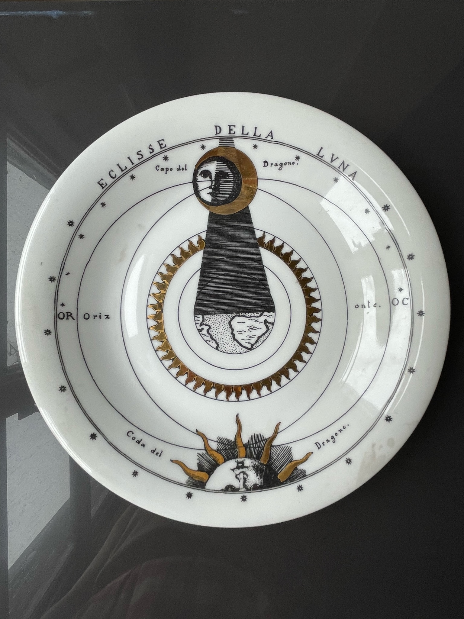Le collezioni esposte fanno parte delle serie Astronomici e Calendario, Astri, pianeti, zodiaci e creature mitologiche fluttuano sulle superfici della serie di porcellane Astronomici trasformando la tavola in una onirica costellazione.
