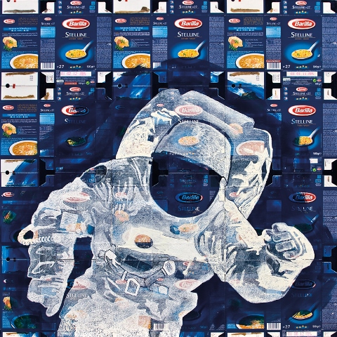 In mostra un significativo gruppo di opere frutto della rielaborazione artistica delle confezioni di alcuni fra i più diffusi prodotti di consumo, attraverso la tecnica del collage arricchita da un uso sapiente del linguaggio pittorico.