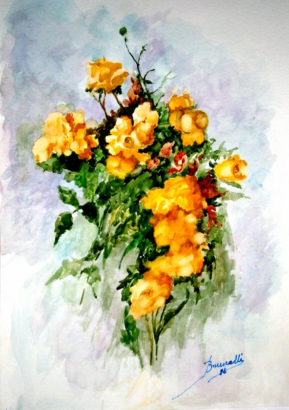 Restituire alla natura la particolarità dei suoi colori, la trasparenza della sua luce, la fragranza del suo profumo è chiedere oggi, a un pittore, quanto ci può riscattare dai condizionamenti cui sono sottoposti i nostri sensi. Se poi a ciò si aggiunge una poesia che converte il sentimento in immagine, allora veramente si assiste a un recupero che ci restituisce il gusto per le cose semplici e pulite. E Giordano Brunelli assolve proprio a un tale compito con nitida freschezza dei suoi acquarelli.