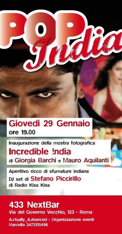 L’esposizione si inserisce all’interno dell’evento Pop India: un itinerario fotografico, gastronomico e musicale con un unico tema conduttore: l’India, i suoi colori, sapori e suoni.