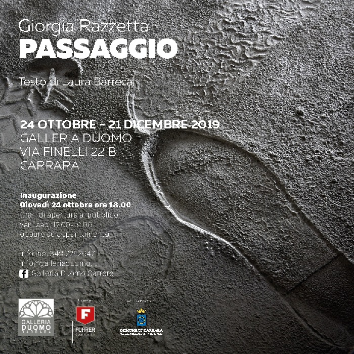 Giovedì 24 ottobre alle ore 18.00 inaugura presso la Galleria Duomo in Via Finelli 22/b a Carrara la mostra personale dell’artista Giorgia Razzetta, dal titolo Passaggio, con la sponsorizzazione di Furrer S.p.A. della famiglia Mazzi ed il patrocinio del Comune di Carrara.