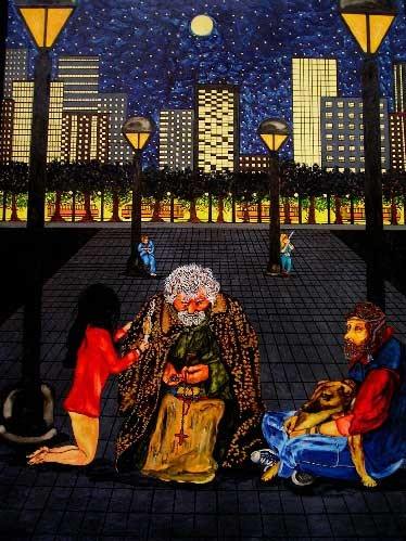 "La vitalità del colore e la forte luminosità appaiono come una prepotente volontà di reagire al destino di anonimato cui le necessità della vita condannano i dolori e le storie"