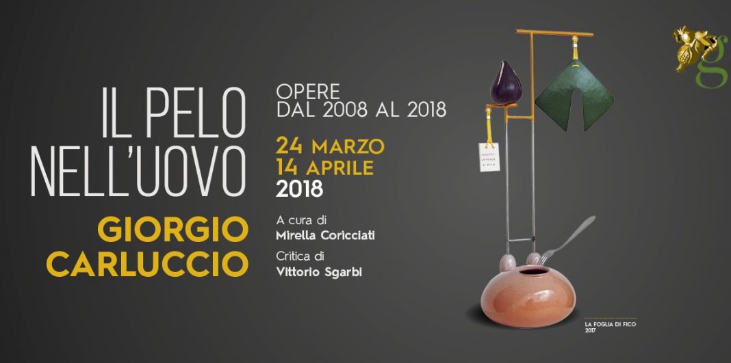 Chiodi, forchette, componenti di acciaio, corda o terracotta: i materiali e gli oggetti di uso comune più disparati divengono portatori dei significati più profondi che si nascondono nelle pieghe dell’animo, in un’alchimia di labili chiaroscuri esistenziali, come in un incrocio di vite appese a sottili fili di seta. “Il filo della memoria”, “Presagio”, “Chiodi rossi”, “Raccogliere le briciole”: più di 20 opere realizzate dal 2008 al 2018, che hanno fatto il giro del mondo e che sono state appositamente selezionate dalla curatrice della mostra, Mirella Coricciati, insieme al critico d’arte Vittorio Sgarbi, per un percorso a tappe che vedrà Carluccio protagonista in numerose città italiane nei prossimi mesi. “Il pelo nell’uovo” è dunque una mostra che parte dalla terra d’origine dell’artista, nello stesso modo in cui dai basamenti in terracotta prendono vita tutte le sue creature scultoree. Come precisa Sgarbi nella sua presentazione dell’artista, “Carluccio stempera il formalismo razionalista insito nella struttura prevalente di queste macchine, il traliccio di derivazione industriale, rettilineo e verticale, a giorno, con l'ossatura, cioè, che si lascia traforare nuda dall'aria, attraverso l'accostamento con elementi di convivenza della più svariata morfologia”.