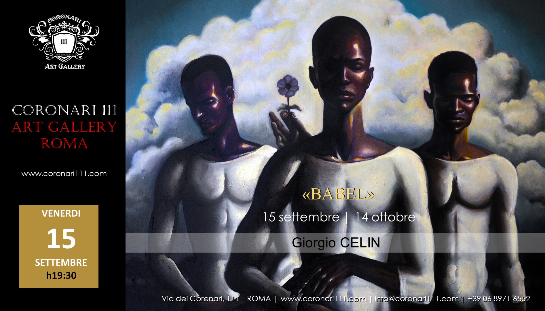 E' dalle macerie (fisiche e culturali) di questa mitica torre che inizia il viaggio di “Babel”, personale di Giorgio Celin che inaugura negli spazi della galleria “Coronari 111” il 15 settembre : il viaggio dell'uomo moderno in un mondo in cui non riesce più a comprendere i suoi simili e si muove, in massa, ma fondamentalmente solo, alla ricerca di un effimero senso di identità.