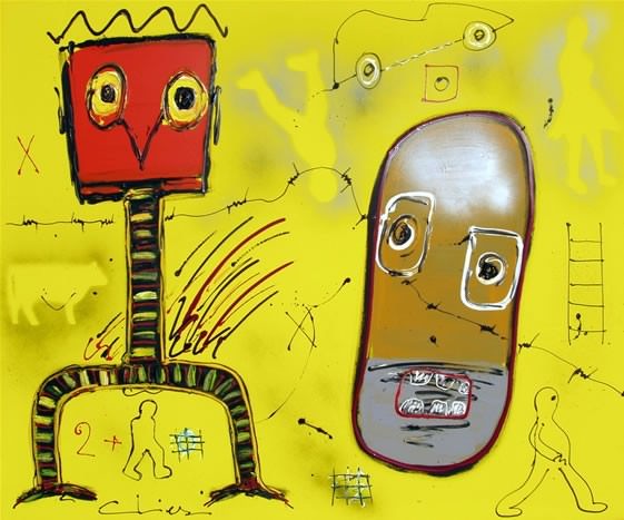 Il 2005 segna un ulteriore passaggio: le grosse teste, eseguite con gestualità e senza ripensamenti, sono vuotate da ogni pensiero e instradate da vari divieti e cartelli che indicano, senza effettivamente volerlo, la strada da seguire. I soggetti ivi rappresentati sono poi contornati da auto, cellulari e lampade, da tutto ciò che la tecnologia moderna propone: il tutto eseguito con un primitivismo infantile che fornisce suggestioni, suggerimenti e materia di pensiero per il proprio futuro.