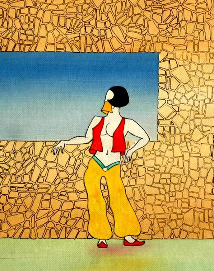 Non senza qualche nostalgia per quella carta stampata che, a suo parere, resta la Regina dell’informazione e non dimentico della vera e propria arte del “menabò”, parola in disuso che altro non significa se non il “disegno” della pagina attraverso il non sempre facile equilibrio di volumi e di forme (nella fattispecie titoli, colonne di testo e immagini) e, soprattutto, non dimentico del fatto di essere passato anche attraverso l’esperienza della vignetta satirica (altro essenziale ed immediato mezzo di comunicazione, capace di esprimere in pochi tratti di matita ciò che un corsivo, per quanto breve, esprime inevitabilmente in più ampi spazi), si è infine dedicato a pennelli e tavolozza creando quella che può essere considerata come un’estrema sintesi delle esperienze professionali fin qui vissute. I suoi lavori, infatti, realizzati con tecniche miste, ad altro non aspirano se non ad una fusione tra disegno, pittura, fotografia e grafica. Il che, in fondo, rientra comunque nel novero della comunicazione o dei “mass media” (come abbiamo imparato a dire), anche se ciò che si vuole comunicare non è necessariamente una notizia, quanto piuttosto una più immediata emozione visiva ed estetica.