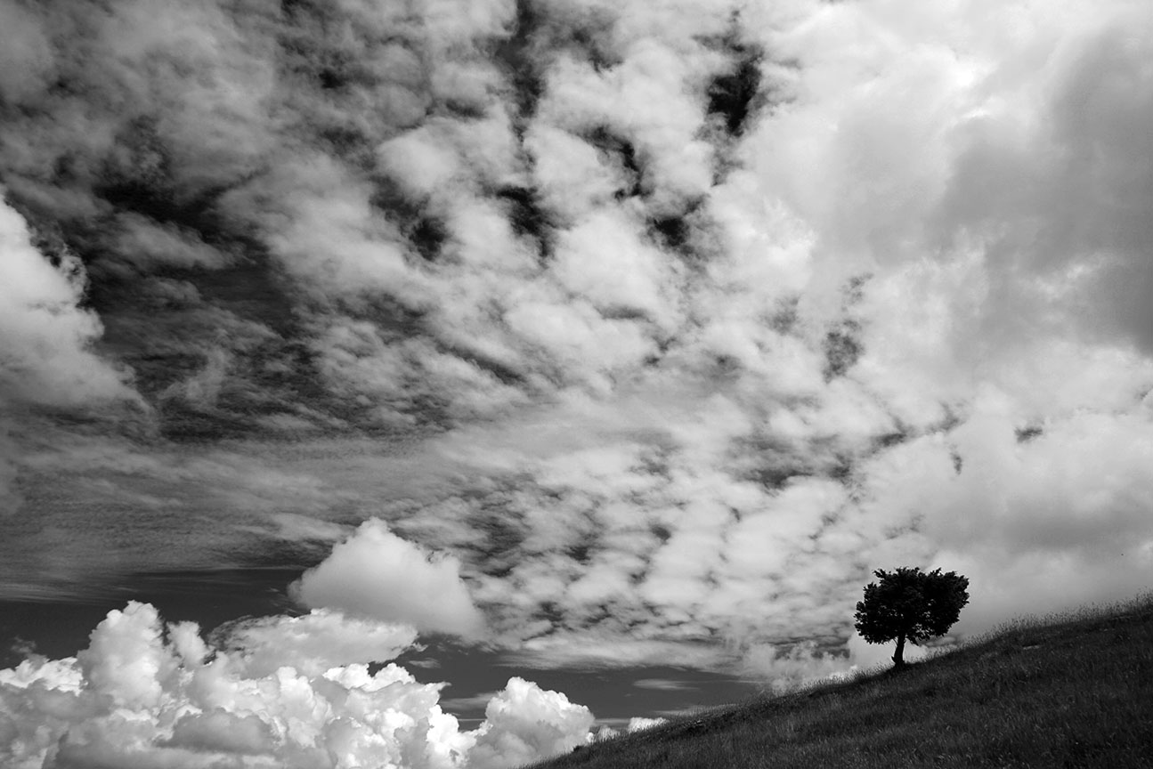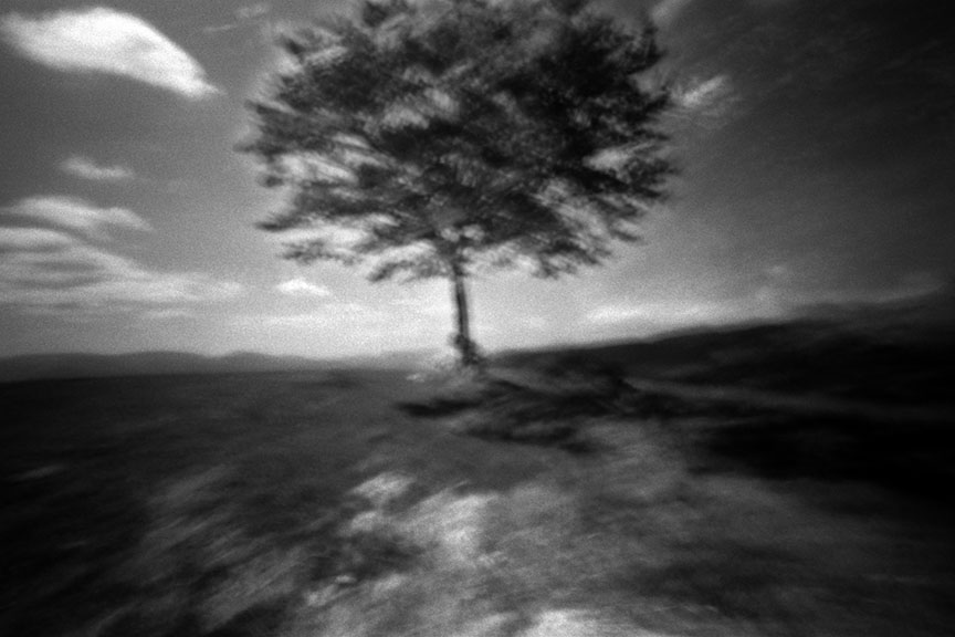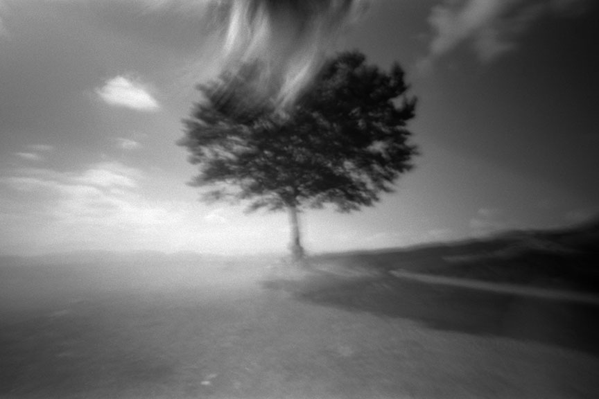 Ne cattura l'immediatezza al primo sorgere della coscienza accentuando la vibrante frenesia intorno alla sua essenza. Ferma l’attimo e lo trasforma in un moto di libertà: l’albero occupa, domina, sente, cresce, vive nello spazio, permea lo spazio, scompare dallo spazio.
