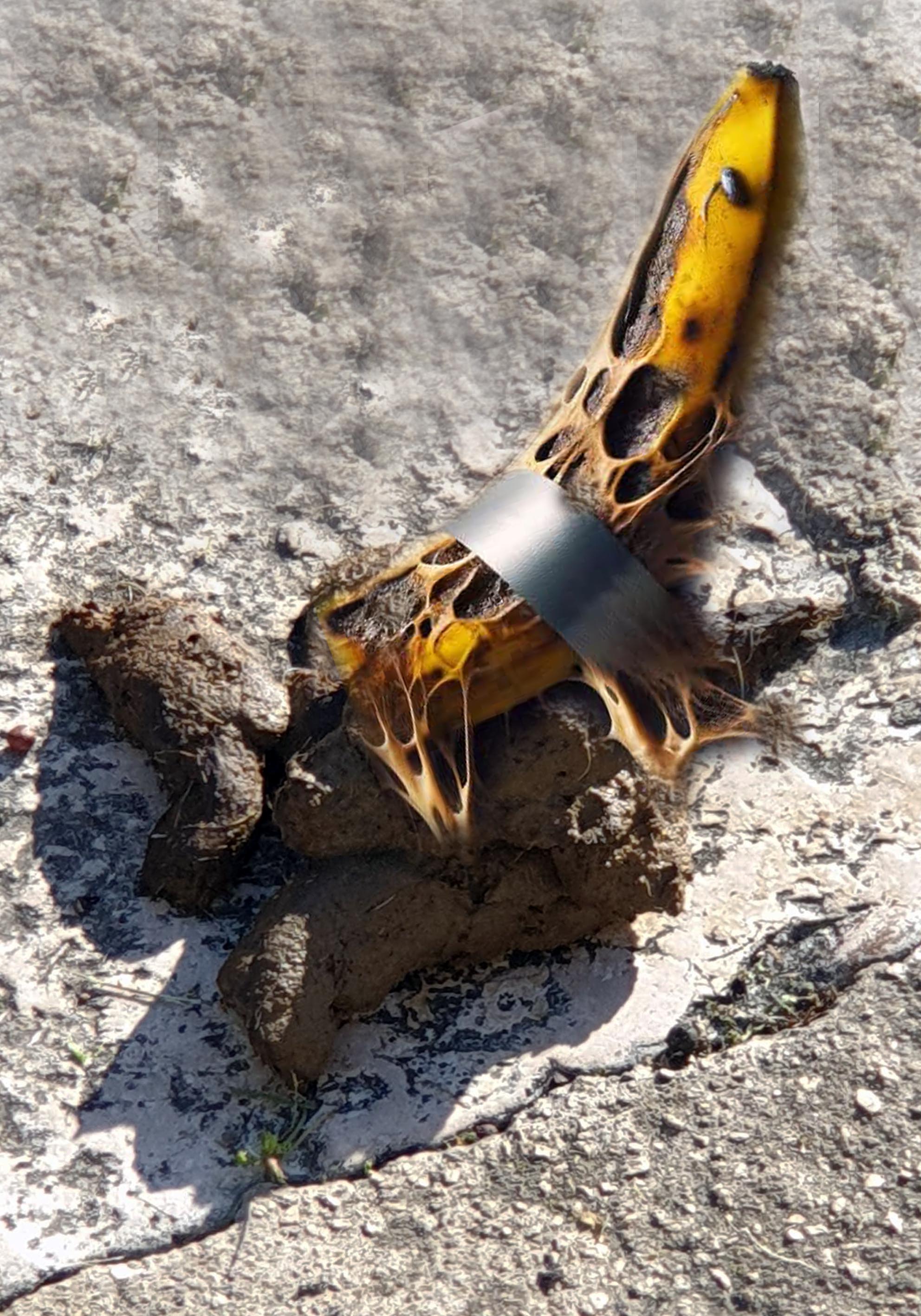 Cattelan, con la sua trovata concettuale, ha catalizzato l’attenzione globale: venduta da Sotheby’s New York per 6,2 milioni di dollari al collezionista Justin Sun, la banana è infine stata mangiata dallo stesso acquirente, diventando simbolicamente (e fisicamente) escremento umano. È da questo gesto estremo – e, per molti, ridicolo – che prende forma la risposta di De Cesario.