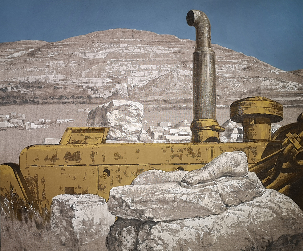 Pinelli rimarca le logiche del limite e dell’eccesso indagando i linguaggi del presente, i comportamenti estremi, la dimensione sociale, all’interno di una cornice massmediale. Distefano risponde invece con una proposta pittorica che trae origine dal paesaggio, per poi riflettere sulla condizione umana e ambientale, rivelando l’instabilità inaspettata che si cela dietro la solidità della pietra.
