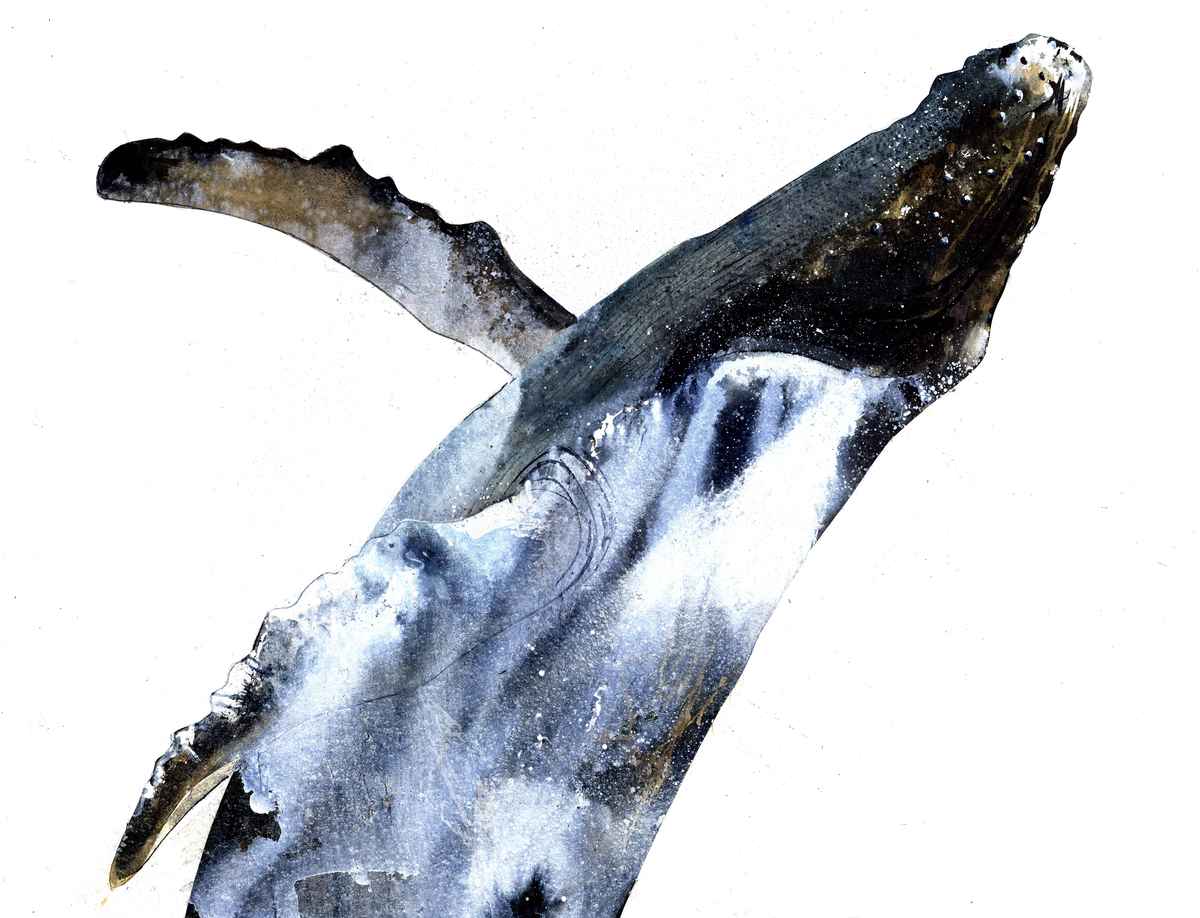 A due anni dalla mostra Cetacea, Giorgio Maria Griffa torna a raccontare il fascino maestoso di capodogli, megattere e balenottere con una nuova serie di acquarelli realizzata negli ultimi due anni.