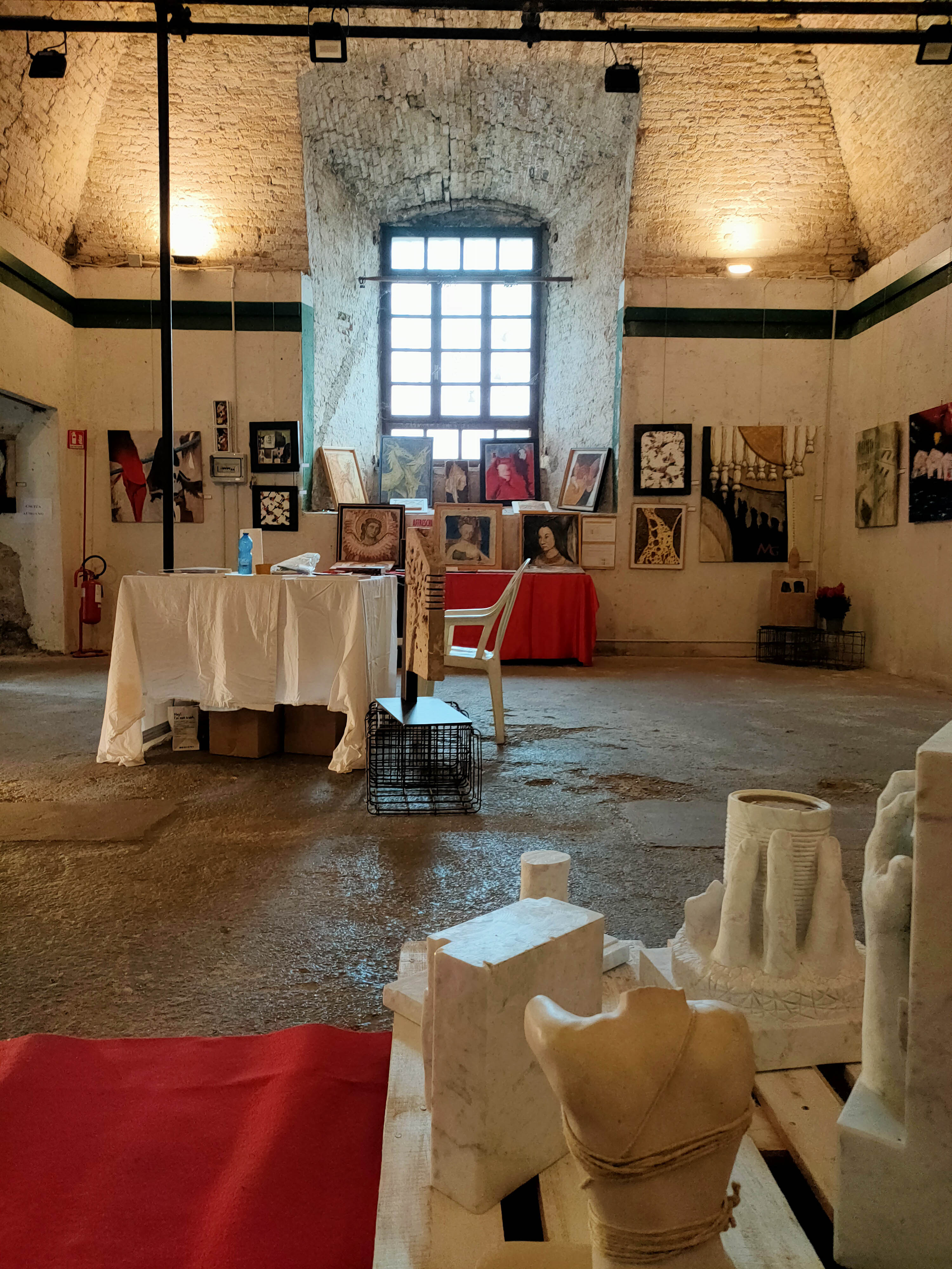 In mostra quadri informali e astratti e sculture in marmo.