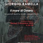 Le tre opere inedite di Giorgio Ramella, di grande formato qui esposte, sono ispirate proprio alle avventure di Ulisse e al mare che ha attraversato nel suo lungo viaggio.