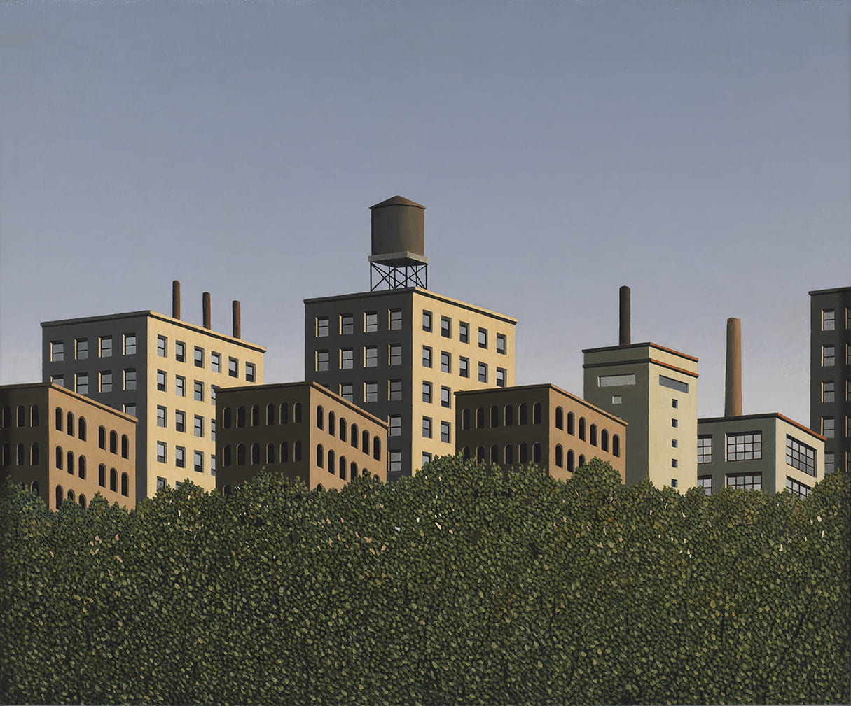 La pittura di Tonelli suggerisce una forte stabilità dell’immagine, espressa da forme pulite, sintetiche ed equilibrate, così come nella misurata ostentazione dei dettagli. La sua rappresentazione del mondo non lascia affiorare alcun cenno al racconto, alla memoria, nessuna vibrazione, nessun trasporto. Ogni segno, ogni variazione cromatica è ragionata e sapientemente dosata. I suoi sono luoghi dell’anima, sospesi nel tempo.