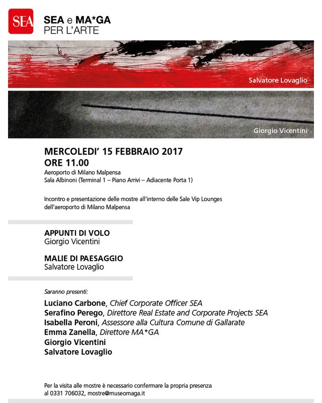 Fino al 31 marzo 2017, l’Aeroporto di Milano Malpensa, in collaborazione con il Museo MA*GA di Gallarate (VA), ospita una selezione di opere di Giorgio Vicentini e Salvatore Lovaglio.