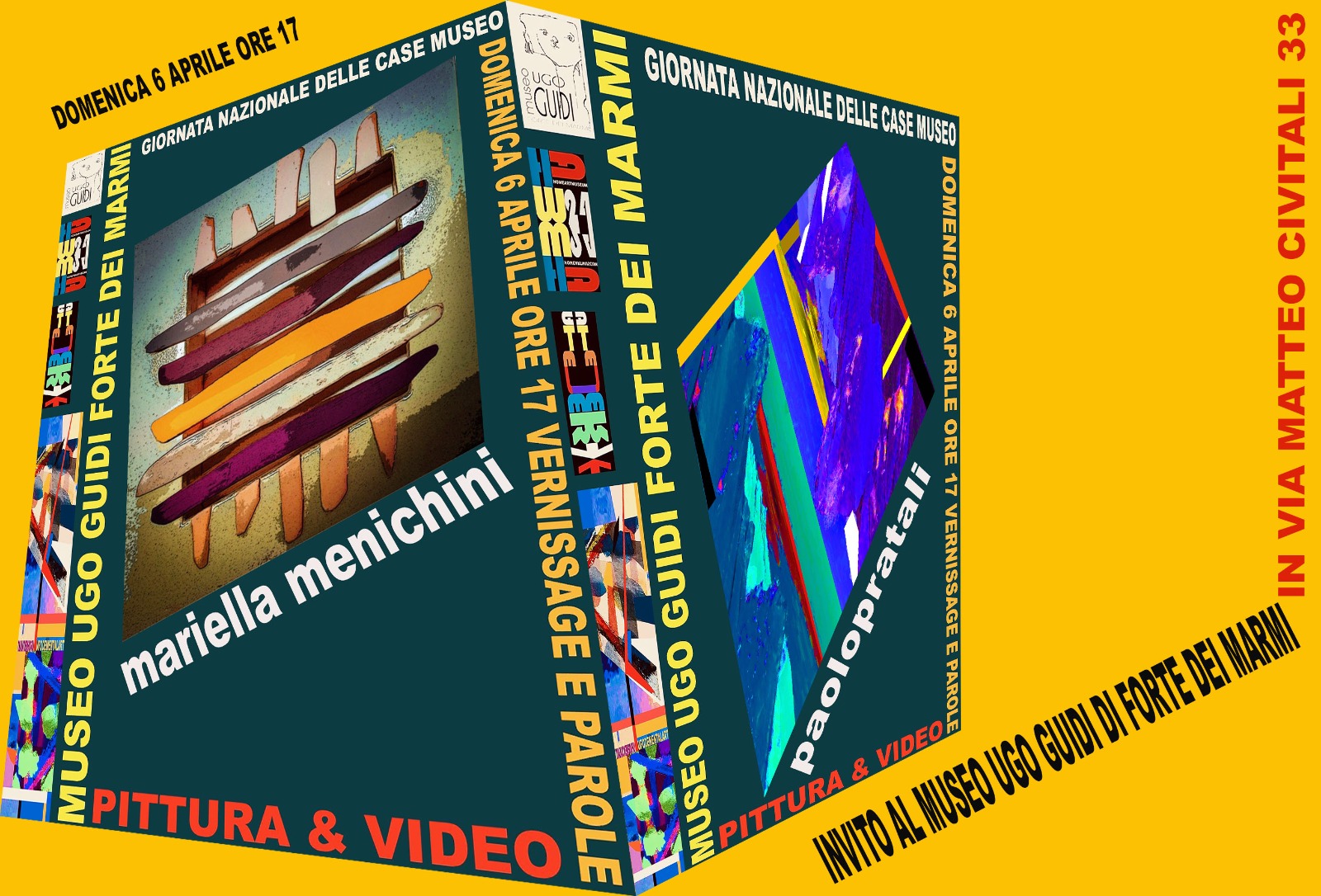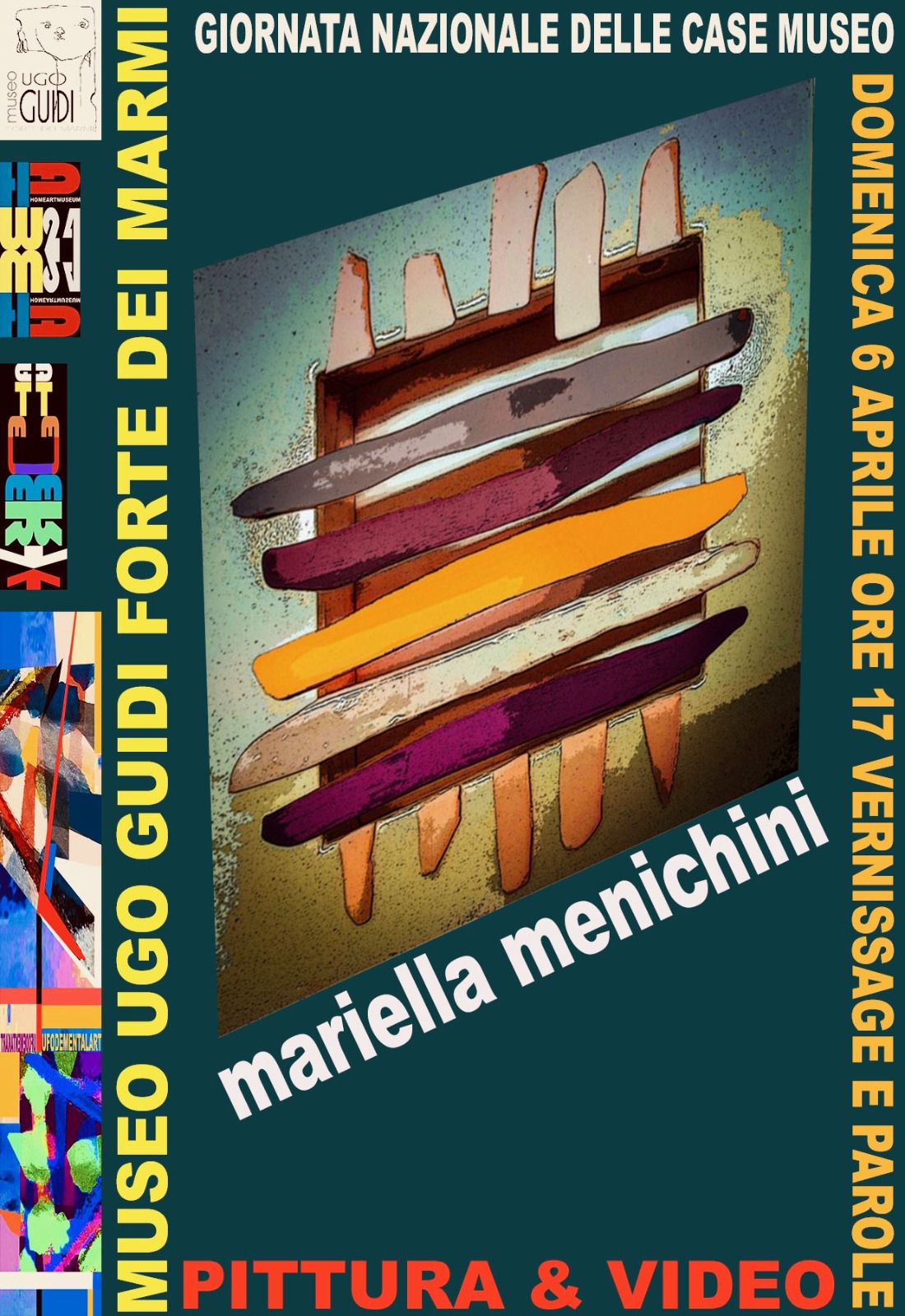 Nell'esposizione al Museo Ugo Guidi, nella Giornata Nazionale delle Case Museo saranno presentate le ultime prove di due autori carraresi, già docenti militanti nella formazione alle discipline Pittoriche presso il Liceo Artistico Gentileschi di Carrara. Mariella Menichini si è formata tra l'Istituto d'Arte diVibo Valenza nell'ambito della Ceramica e della Plastica Contemporanea. La sua ricerca esercita la contaminazione di prove aperte tra la scultura, la decorazione e la pittura. Ha realizzato numerose mostre nel territorio nazionale trovando soddisfacenti sperimentazioni nelle aree degli arredi legati all’interior design. Nelle stanze del Guidi presenta 7 tecniche miste immerse frammiste di alchimie e colori magici che esaltano i confini aperti delle avvincenti vibrazioni di una mimesi intima. Paolo Pratali propone sette oggetti minimali. La sua formazione risale agli inizi degli anni ottanta (pochi dopo l’uscita dall’Accademia del ’77), collaborava strettamente con lo storico dell'arte Giorgio Di Genova curando allestimenti creativi e concettuali. La sua militanza creativa si è manifestata attraverso "i viaggi dell'Altrove" dove recuperava il Labirinto Esistenziale di una pittura intensa e chirurgica. Ha prodotto e conquistato numerosi traguardi con un rendimento artistico-immaginativo vissuto con la partecipazione quale protagonista a preziose manifestazioni, fiere d’arte nazionali e internazionali (Bari, New York, Francoforte, Bologna). È stato l’organizzatore dei primi quattro Simposi di scultura di Carrara (dal 1979) ha curato la rivoluzionaria Lista Esoterica (del 2002) e le notevoli esposizioni di Immaginariamente Eros (del 2005 & 2006). Aveva iniziato a vent’anni (1974) curando le Gallerie Il Gigante e Atelier: ha proseguito nella doppia veste di autore & imprenditore dell'arte. Del 1975 presenta video-performance transitando dalla pittura alla scultura all'installazione completando il suo procedere degli ultimi anni con la scrittura di libri e non ultima la web-grafica. Nel vernissage del 6 aprile alle ore 17 oltre Paolo Pratali presenterà un assaggio di UFODEMENTALART con una carrellata di video firmati da: Becky Guttin, Guglielmo Achille Cavellini, Mario Federico Dell'Amico, Andy Warhol, Monica Michelotti, Piero Manzoni, Yoshin Ogata, Robert Mapplethorpe, Andrea Fagioli, A. R. Penck, Pippo Altomare & Federica Ricca.