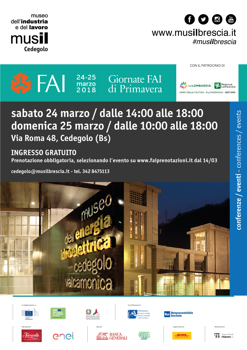 Apertura della stagione museale del musil di Cedegolo con le Giornate del Fai di Primavera. Protagonista il capolavoro di archeologia industriale a due passi da Brescia.