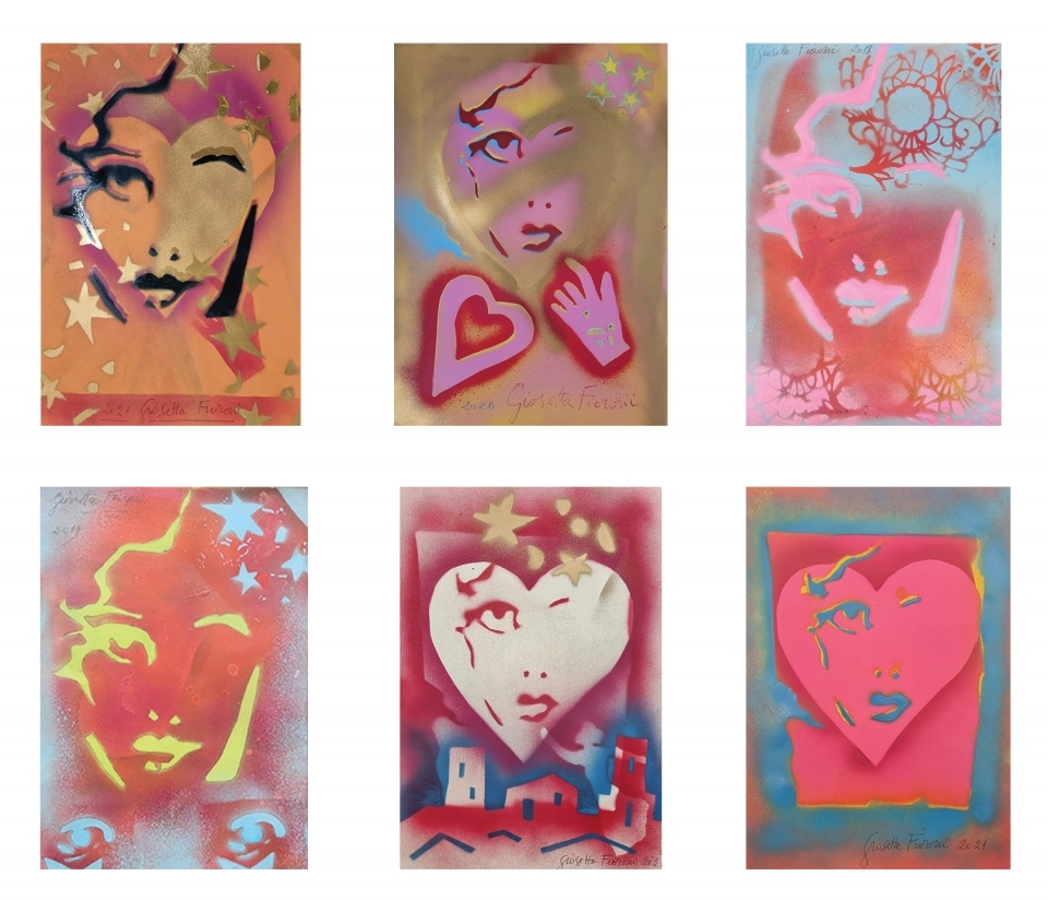 «Considerata tra le principali interpreti dell’arte italiana del secondo dopoguerra, Giosetta Fioroni, nata a Roma nel 1932, è stata la protagonista femminile di quella che molti critici hanno definito la pop art romana (definizione che non ha mai convinto gli artisti di Piazza del Popolo, restii nell’ancorare il proprio linguaggio all’esperienza americana). Sin dagli esordi, alla fine degli anni ’50, la sua instancabile ricerca continua ad offrirci opere sorprendenti, ed è proprio attraverso questi lavori che vogliamo omaggiare la sua arte.