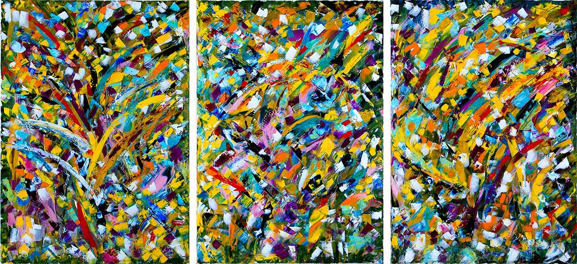Come ha scritto Marina Ferrario “ la scomposizione del segno consente all’artista di andare oltre la rappresentazione figurativa, il linguaggio cromatico rivela così il significato tacito del segno, il gesto si fa autentico scoprendo il movimento e la dinamica del colore”.