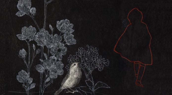 saranno esposte le tavole, realizzate con tecniche miste, che costituiscono le pagine del libro “Il bosco, la ragazza e il lupo”, Edizioni Kite.