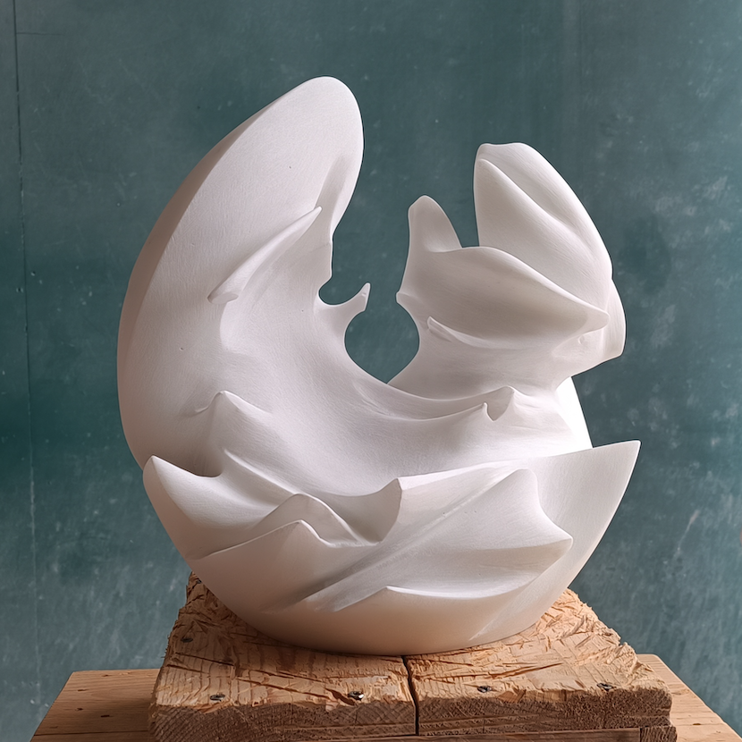 È così che lo scalpello di Giovanni Balderi plasma la materia alla ricerca dell’anima intrappolata all’interno del blocco di marmo che, nonostante la sua durezza, si presenta allo sguardo come leggero e delicato. L’eco di quell'anima che l’artista libera dai vincoli della materia e modella in forme leggiadre, viene catturato dall’occhio dell’osservatore che percepisce ogni scultura come una rappresentazione visiva dei conflitti interiori e della capacità umana di far fronte alle fragilità. Sebbene il momento della creazione e quello dell’osservazione siano diversi e separati e sebbene l’artista e il visitatore restino lontani, essi sono uniti dalle emozioni che la superficie levigata del marmo restituisce e suscita in ciascuno.