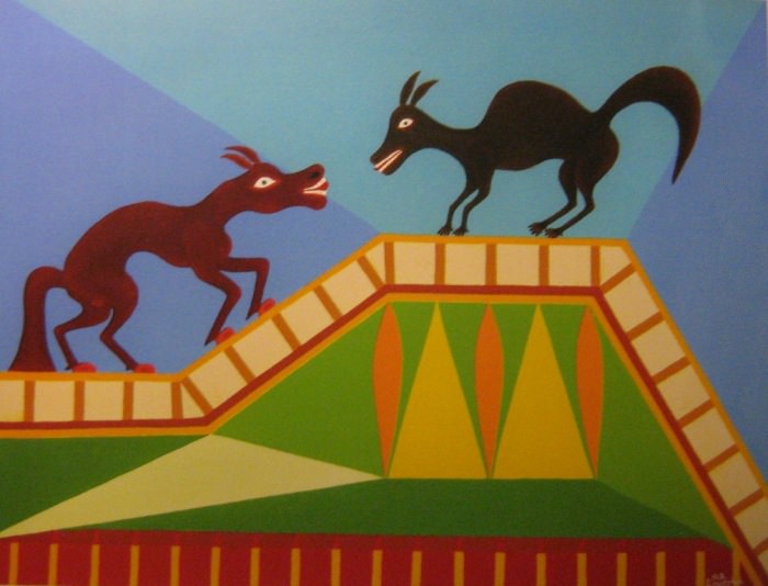 Così i suoi animali emblematici e surreali (cavalli, uccelli, farfalle ecc.) altro non vogliono rappresentare che le varie tipologie del genere umano e i mutevoli atteggiamenti che, di volta in volta, vengono assunti di fronte alle innumerevoli situazioni.